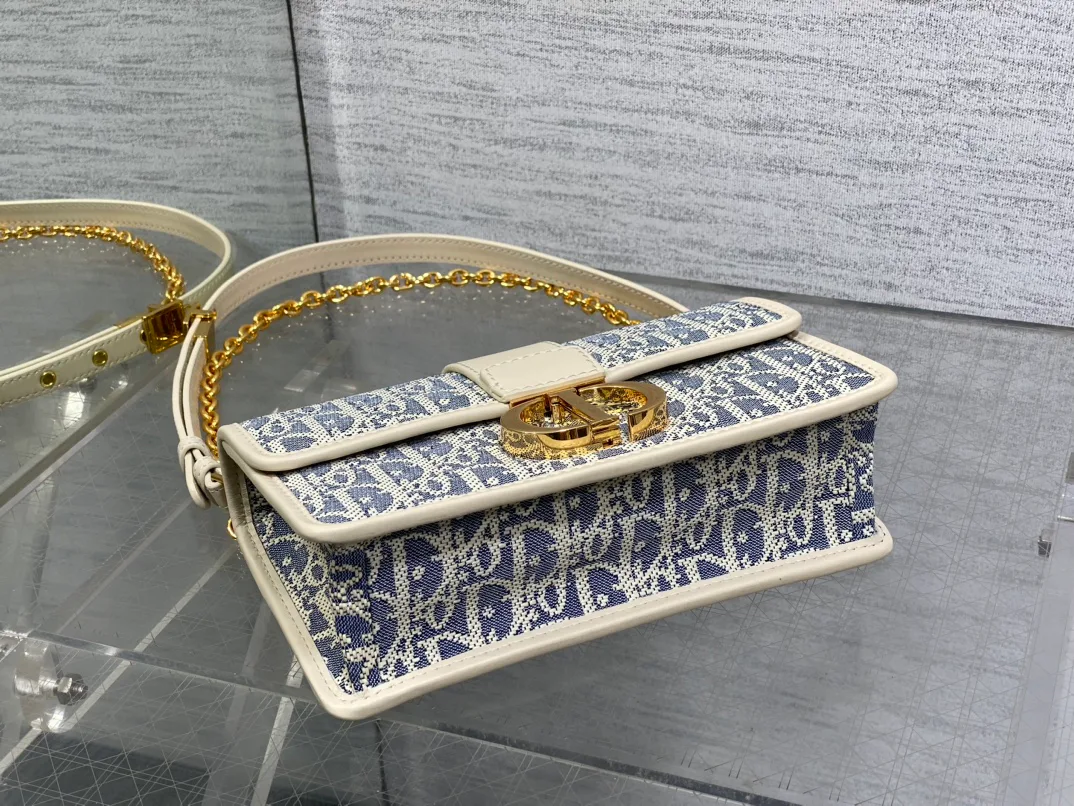 Сумка оснащена культовым замком с буквой-логотипом Dior и изящной цепочной плечевой цепью, обеспечивающей удобство ношения. Размеры составляют 21 × 6 × 12 см. Она отлично подходит для дневных поездок, прогулок и летнего использования благодаря легкой цветовой гамме и практичному внутреннему пространству. Сумка сочетает в себе модерн и утонченную классику, что делает ее актуальной в любых ситуациях.