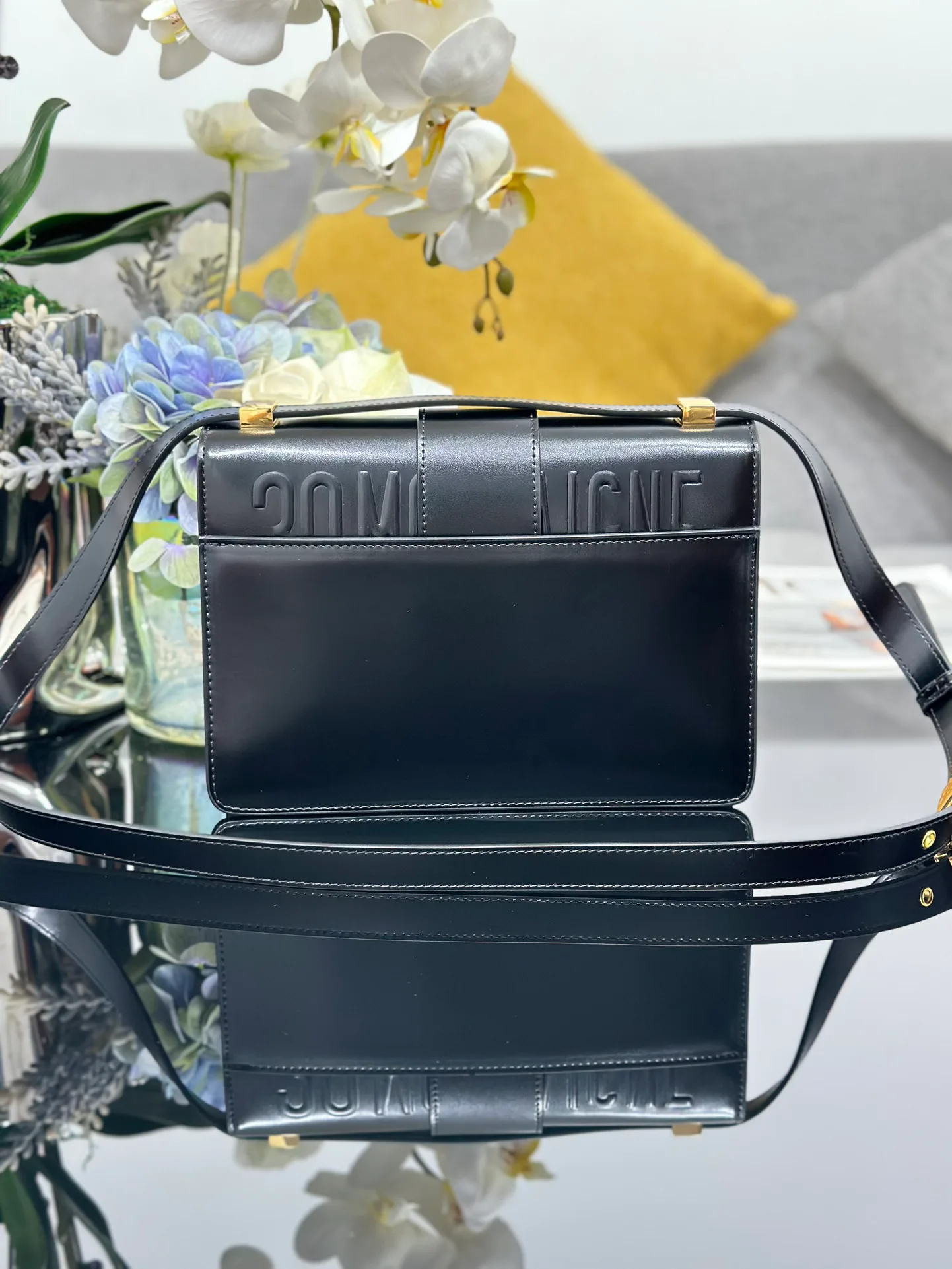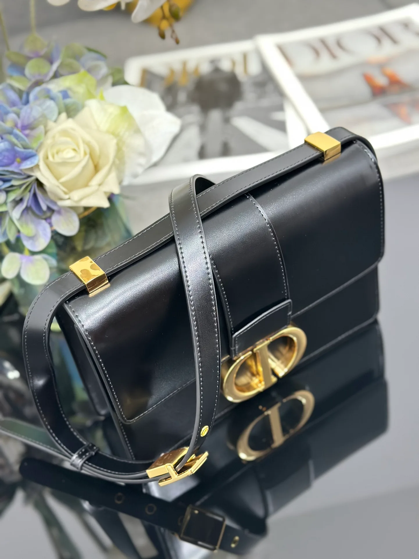 Сумка имеет кожаный регулируемый ремень, позволяющий носить ее на плече или через плечо. Задняя часть украшена объемным тиснением 30 Montaigne и задним карманом для мелочей. Размеры сумки составляют 24 x 17 x 8 см, что подходит для основного набора вещей: телефона, документов формата A5, кошелька и мелких принадлежностей. Сумка подходит для повседневного использования, деловых встреч и вечерних выходов.