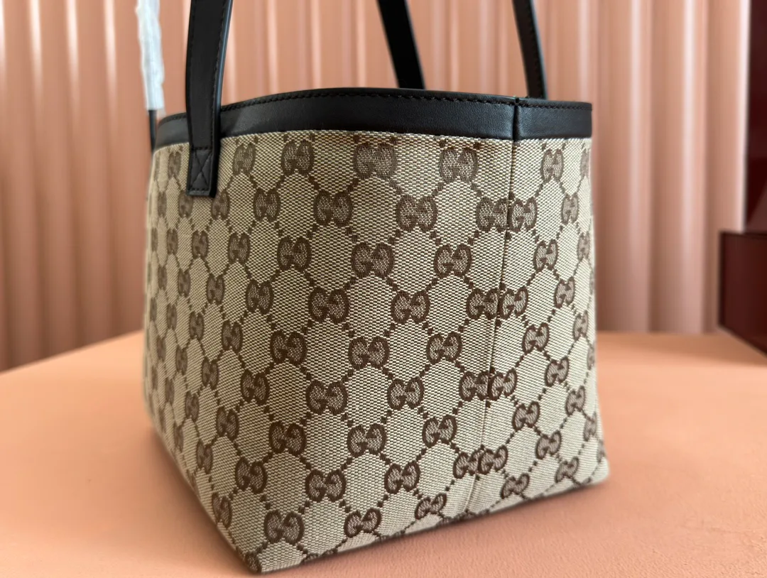 Сумка небольшого формата имеет размеры 21.5 см в ширину, 17.5 см в высоту и 18 см в глубину. Высота двойных ручек составляет 22 см. Она подходит для ручной клади и вмещает смартфон, AirPods и длинный кошелек. Сумка весит около 0.3 кг и производится в Италии.