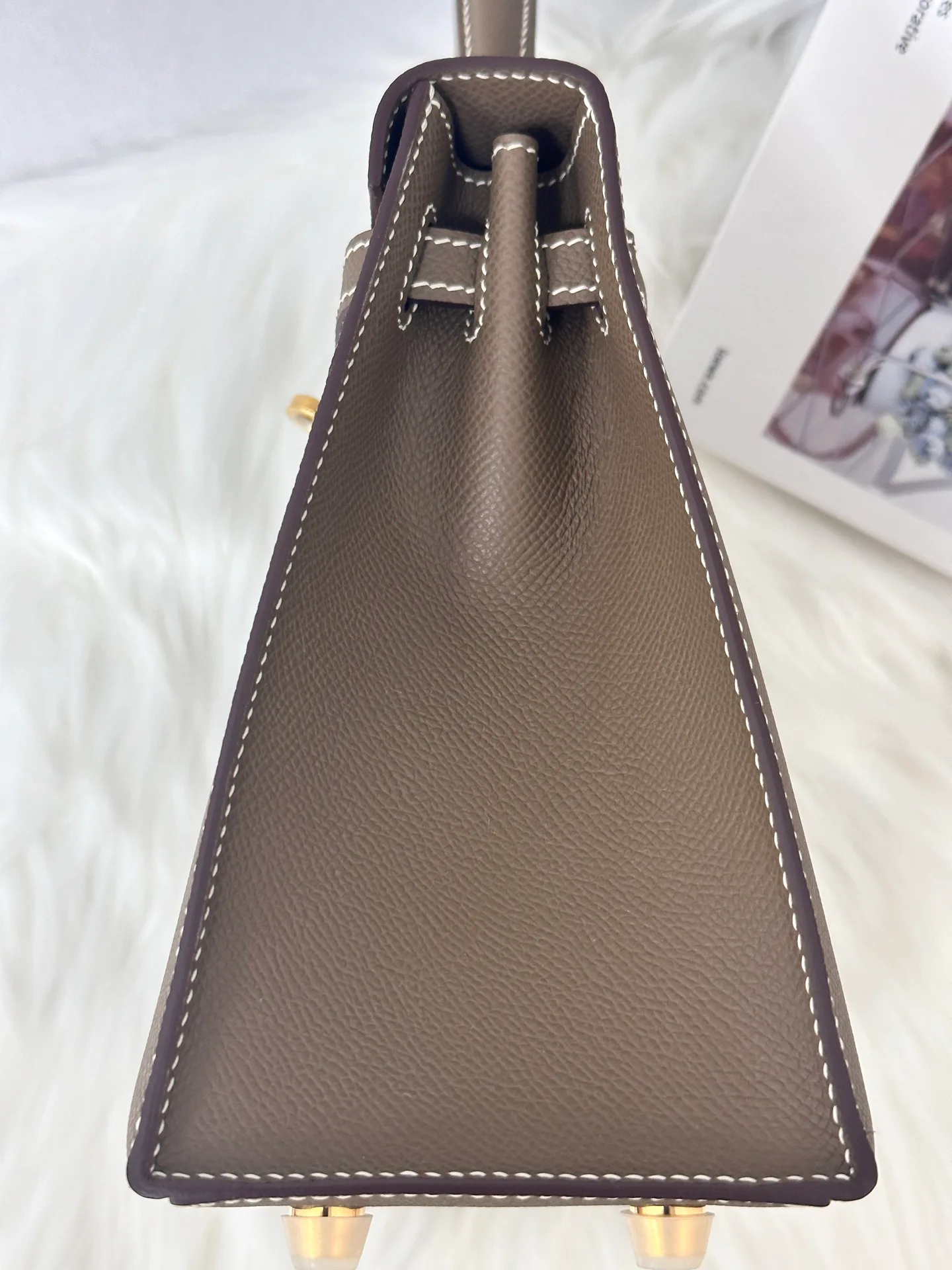 Сумка Kelly25 имеет размеры около 25 см в длину и готова к отправке. Уход за изделием предполагает защиту от сильной влаги. При попадании влаги следует мягко промокнуть сухой тканью и дать высохнуть естественным путем. Хранить в сухом месте, желательно в чехле. Протирайте поверхность мягкой тканью для поддержания внешнего вида.