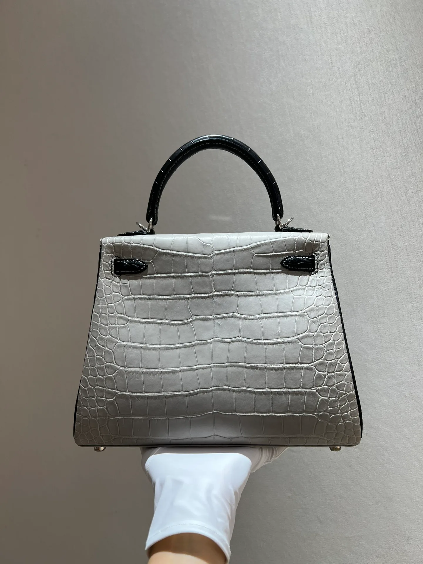 Kelly25 отлично смотрится с костюмами, офисной одеждой в нейтральных оттенках, а также с джинсами и свитерами в повседневных образах. Минималистичные украшения и простые аксессуары подчеркнут двухцветную гамму, позволяя акцентировать внимание на стилистике сумки.