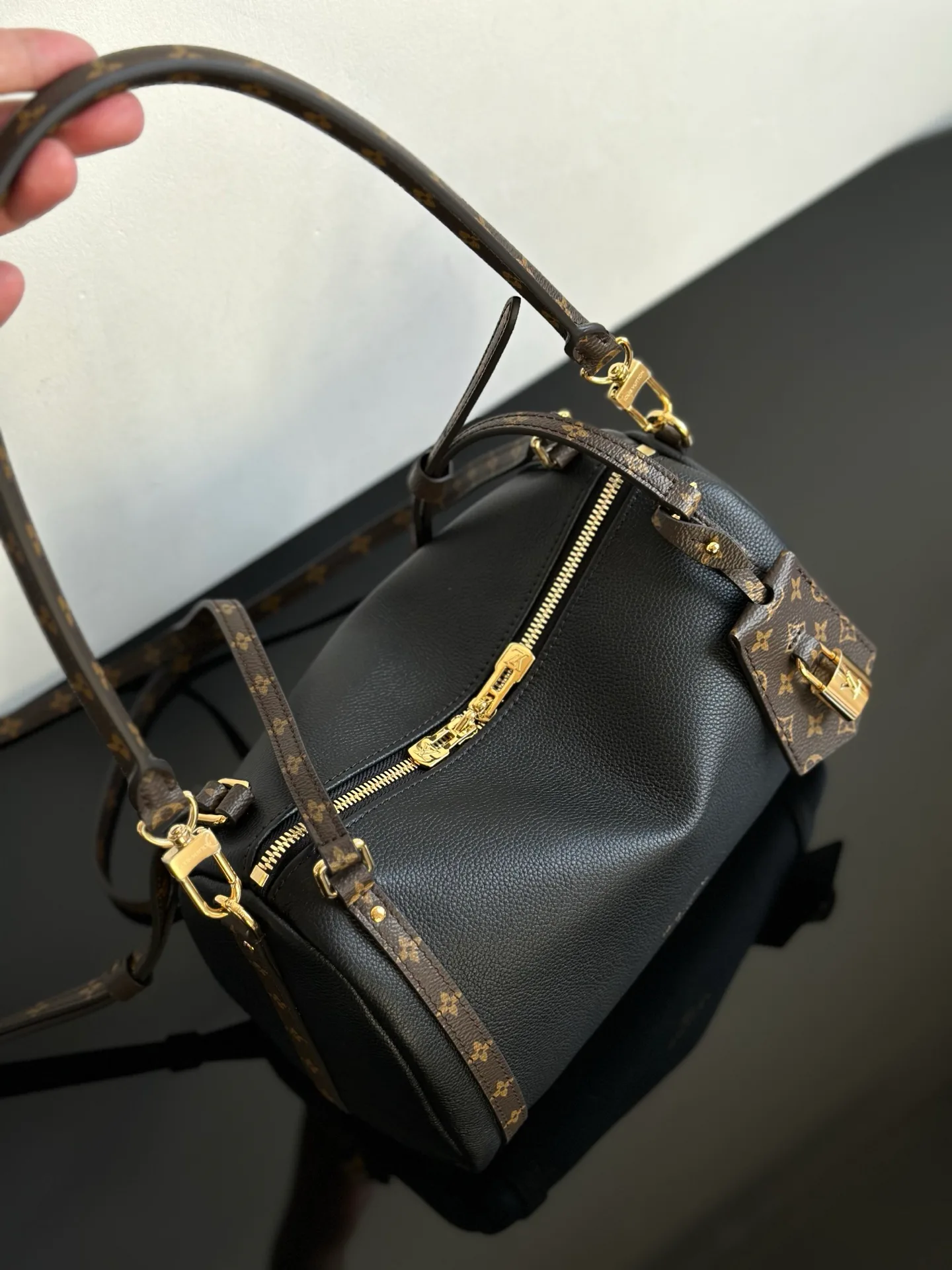 Сумка подходит как для повседневной носки, так и для более формальных мероприятий. Уникальная форма и лаконичный черный цвет создают современный стиль. Размеры изделия составляют 26 × 17 × 13,5 см, что делает её универсальной и легкой для адаптации под различные гардеробы.