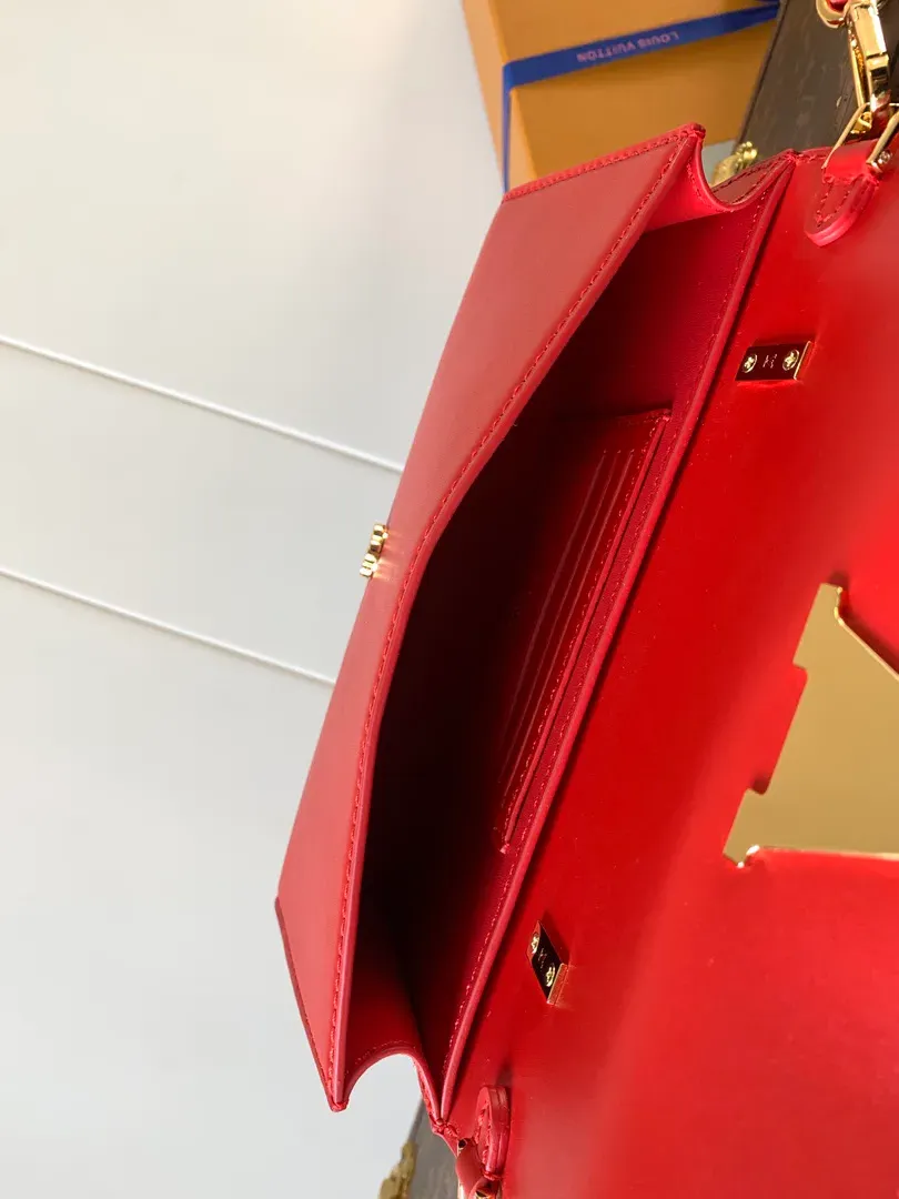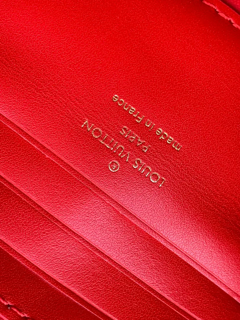 Кошелек хорошо продуман и предлагает множество функциональных возможностей. Он оснащен съемной металлической цепочкой и кожаным ремешком, что позволяет носить его на плече, через плечо или в руках. Внутри находится аккуратный отсек с магнитной застежкой в виде цветков Monogram, обеспечивающий надежное хранение ваших вещей. Также предусмотрены карманы и отделения для карт, которые делают организацию пространства комфортной и удобной.