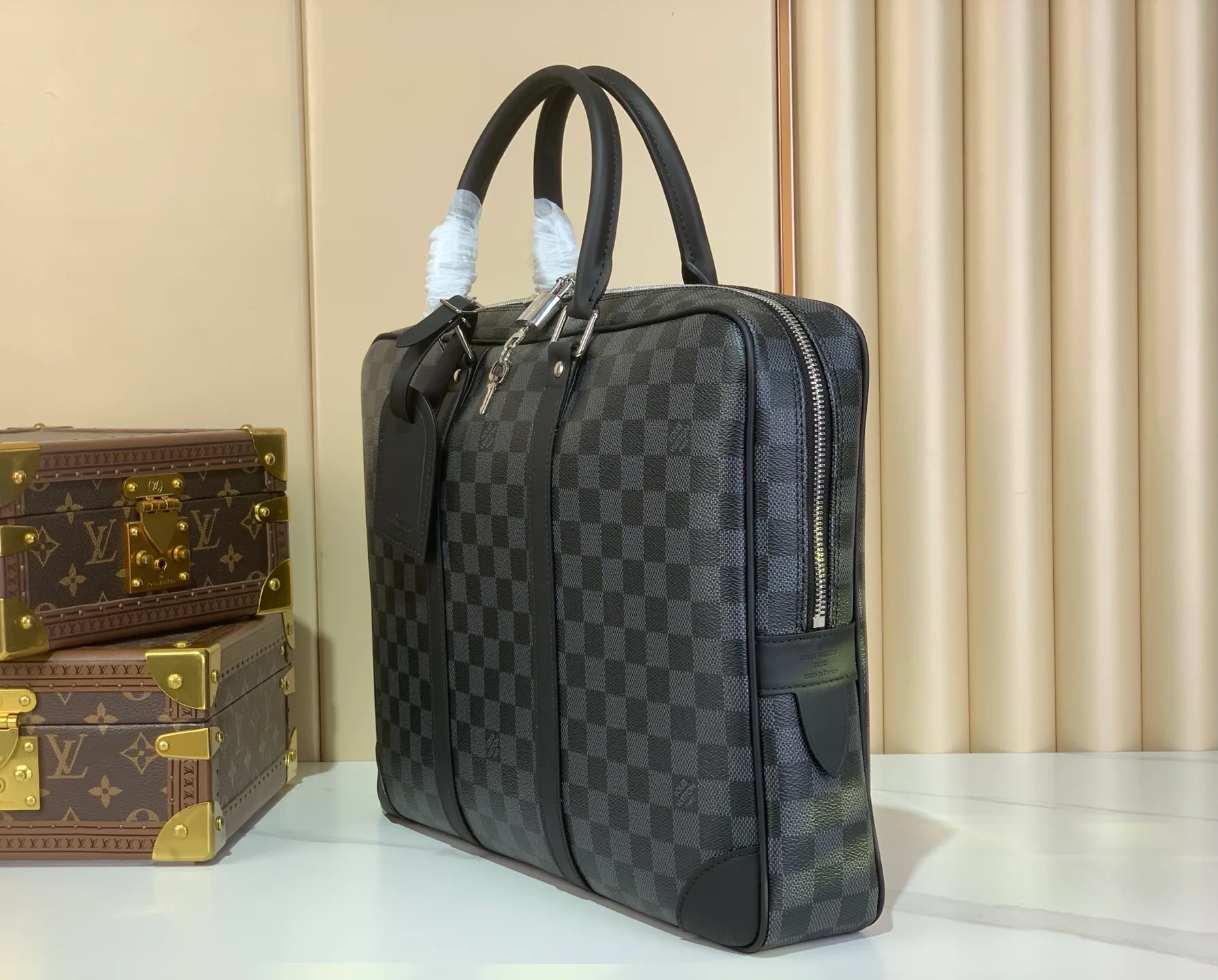 Размеры сумки составляют 41 x 31 x 7 см, что делает её подходящей для использования в офисе и в поездках. Современная интерпретация дизайна LOUIS VUITTON соединяет элегантность и практичность, что важно для современных бизнес-профессионалов.