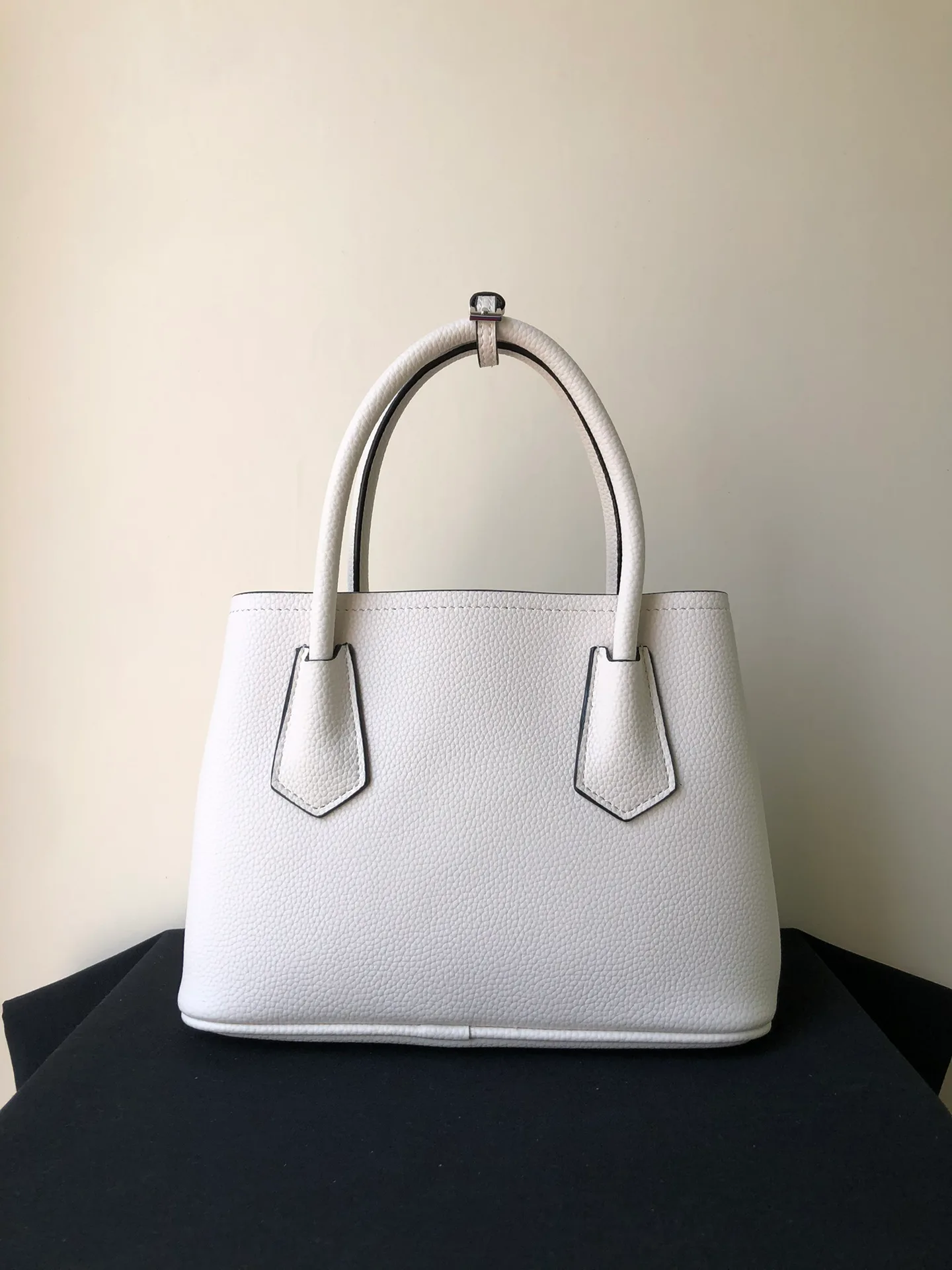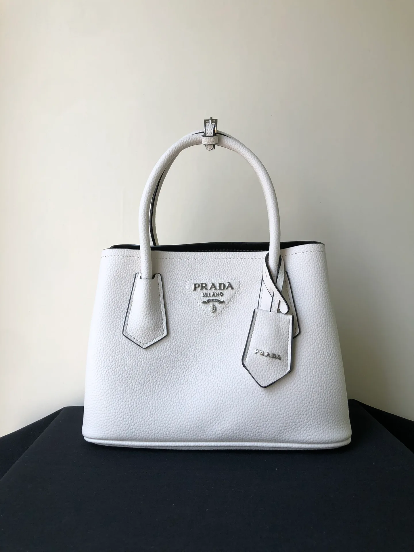 Сумка оформлена лаконичным логотипом в виде треугольника с металлической гравировкой, который подчеркивает её изысканный вид. Благодаря съемному плечевому ремню, PRADA Double можно носить как на плече, так и на бедре, что делает её универсальным аксессуаром для любых событий.
