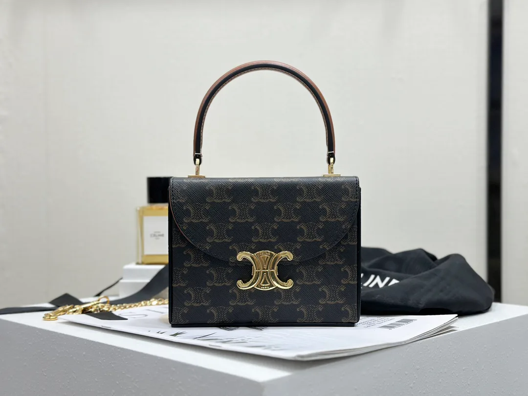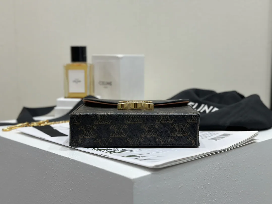 Компактные размеры — около 16 × 12.3 × 4 см — позволяют разместить устройства формата iPhone Pro, однако iPhone Pro Max не подойдет. Модель имеет металлический замок Triomphe и оформлена как эксклюзивная, доступная в ограниченном количестве. Этот аксессуар подходит для вечерних выходов, добавляя изысканность любому наряду.