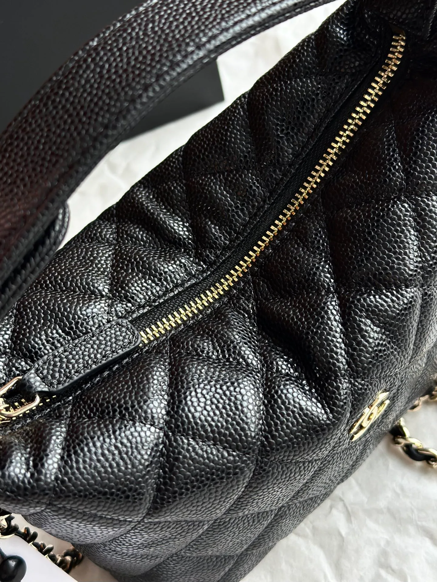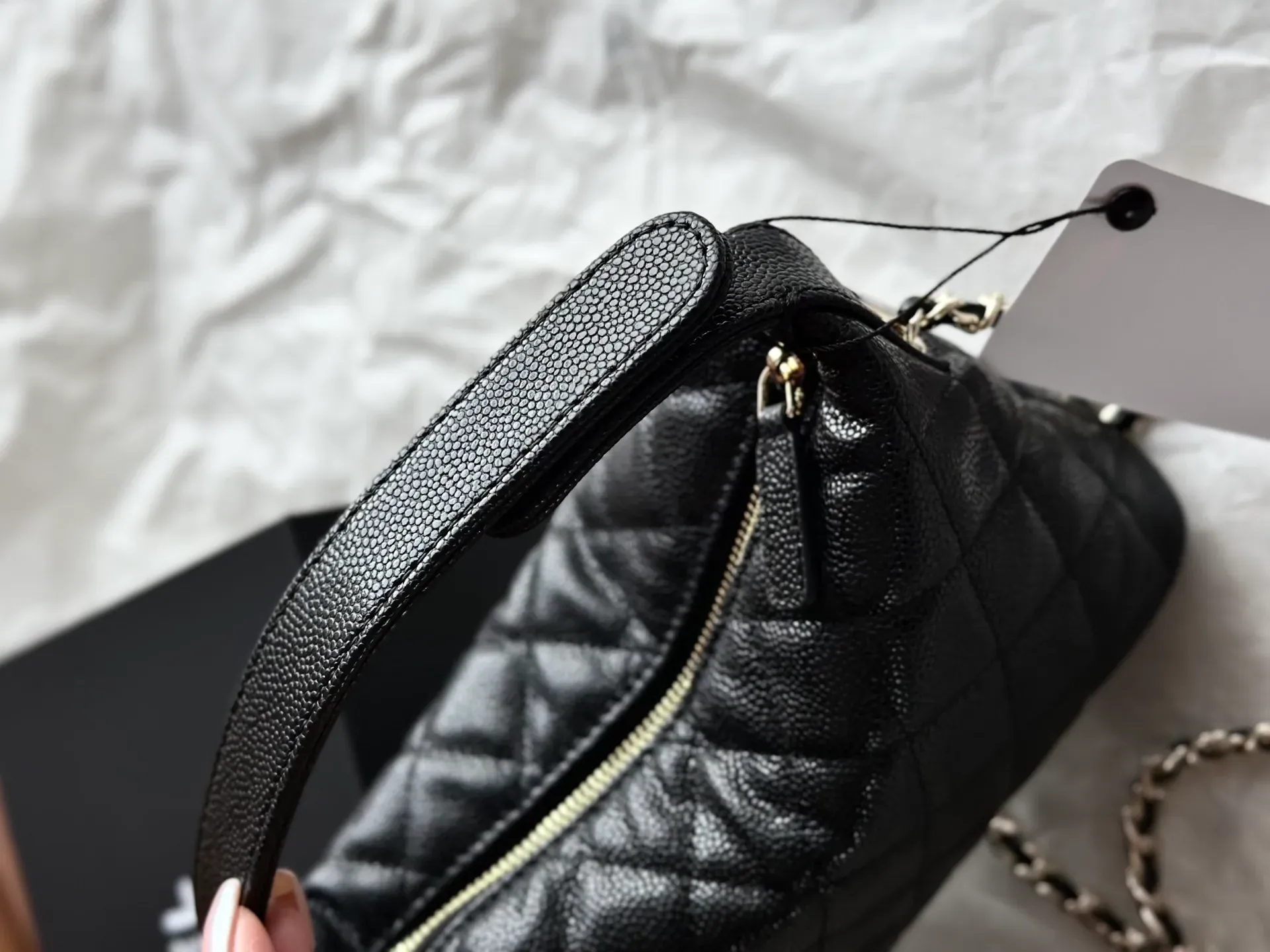 Сумка может носиться через плечо или как кросс-боди. Цепь можно аккуратно обмотать кожей для удобства, превращая сумку в компактную ручную. Размеры 21.5 × 6 × 19 см делают ее удобной для повседневного использования и вечерних выходов. Каждый элемент модели 25c передает характер и шарм бренда CHANEL.