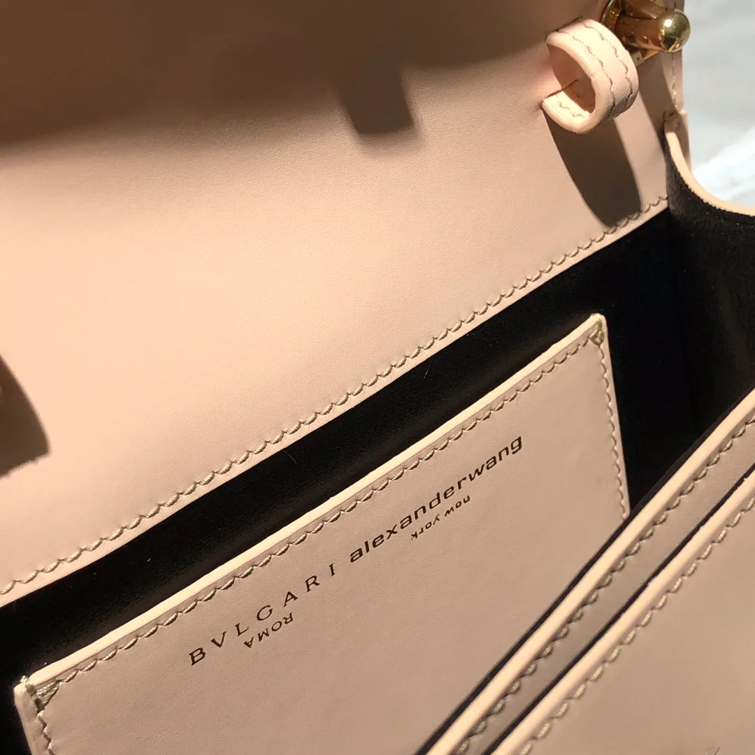 Особенности: коллекция WangxBvlgari; концепция — новая интерпретация snake head clasp, вдохновение Serpenti Forever. Упаковка: черная бархатистая подарочная коробка с высокой детализацией. Размер: 18.5 × 13 × 6.5 см. Возможности ношения: съемная ручка, съемный пояс, съемная цепочка и кожаный ремешок для плеча — несколько вариантов. Модель: 288739. Бренд: Bulgari (BVLGARI), авторское сотрудничество с Alexander Wang. Этот предмет является частью лимитированной капсульной коллекции WangxBvlgari и может носиться как клатч или с разными ремнями для разных случаев.
