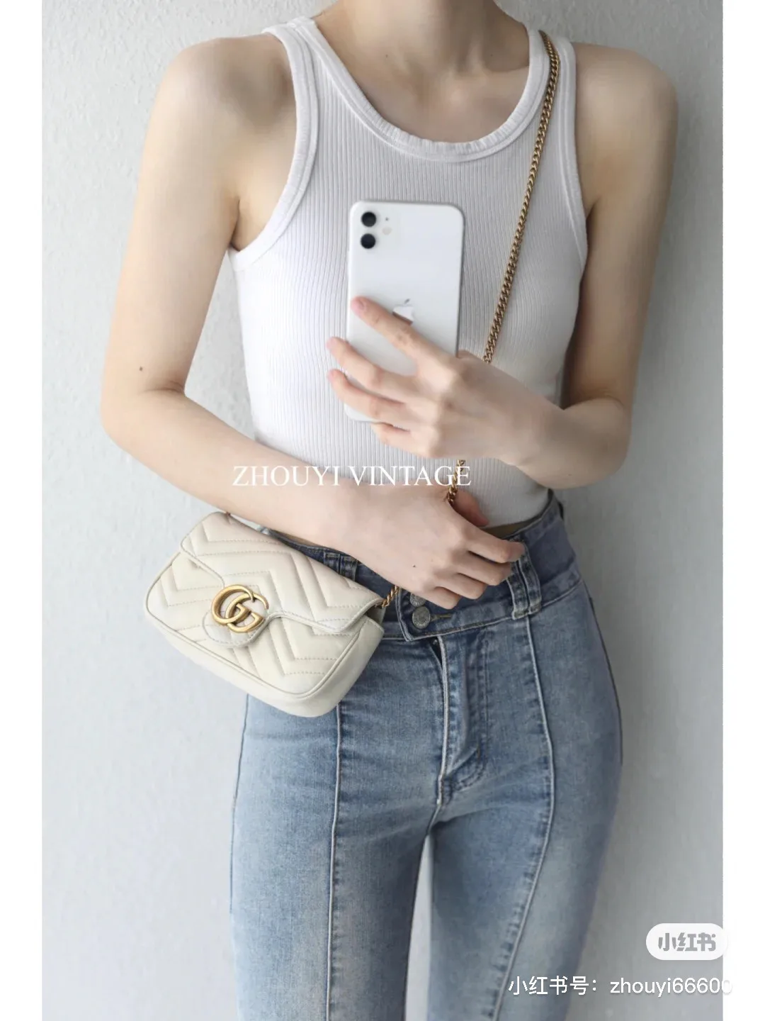 Сумка GG Marmont mini символизирует статус и утонченный вкус. Уход за изделием требует осторожности из-за деликатности материала.