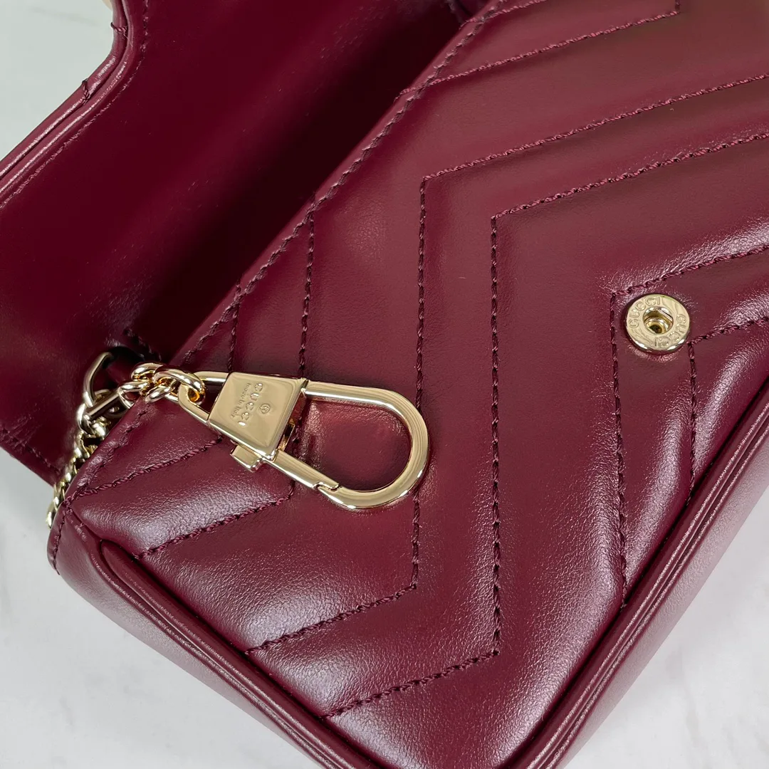 Внутреннее оформление выполнено из Ivory белой кожи, что обеспечивает долговечность изделия. Размеры сумки: 16.5 см в ширину, 10 см в высоту и 4.5 см в глубину. Модель имеет артикул 476433 и насыщенный алма-красный цвет 5704502830. Этот аксессуар легко вписывается в повседневный гардероб и подходит для различных мероприятий.