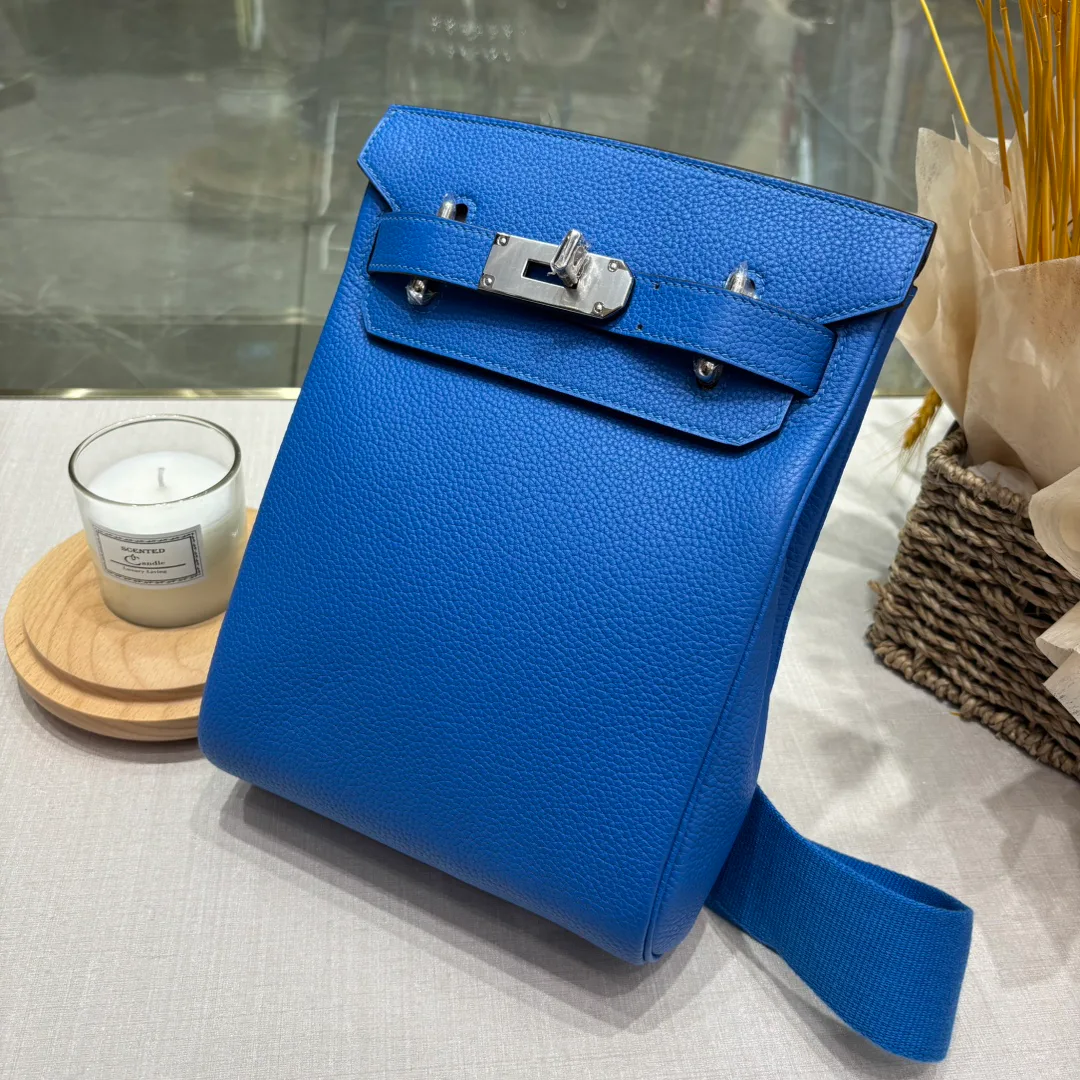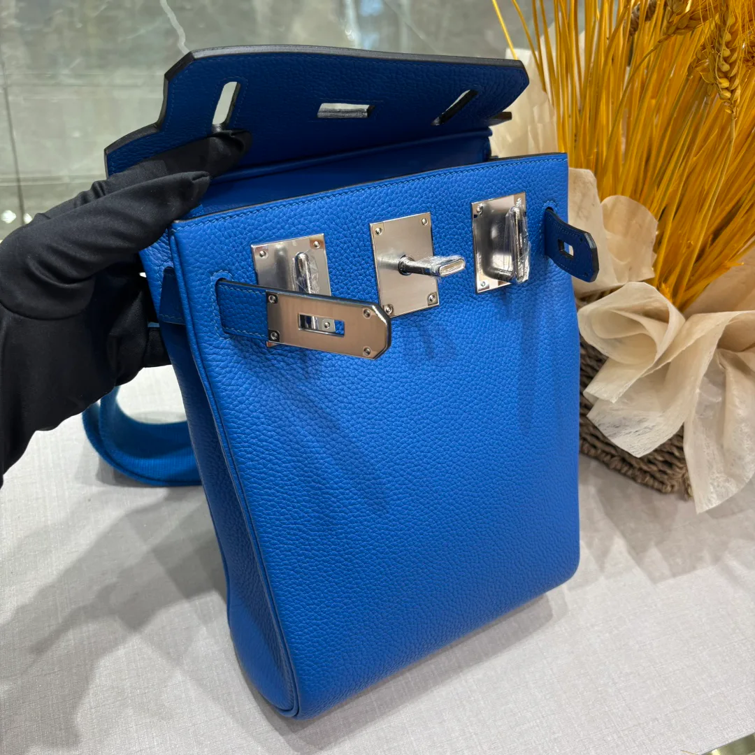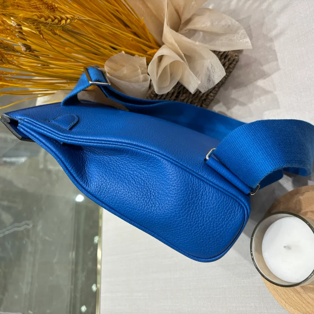 Ключевые характеристики: новый цвет электрически-синий; фурнитура серебряная; материал кожа Togo; удобный регулируемый плечевой ремень; компактный вертикальный дизайн; подходит для мужчин и женщин.