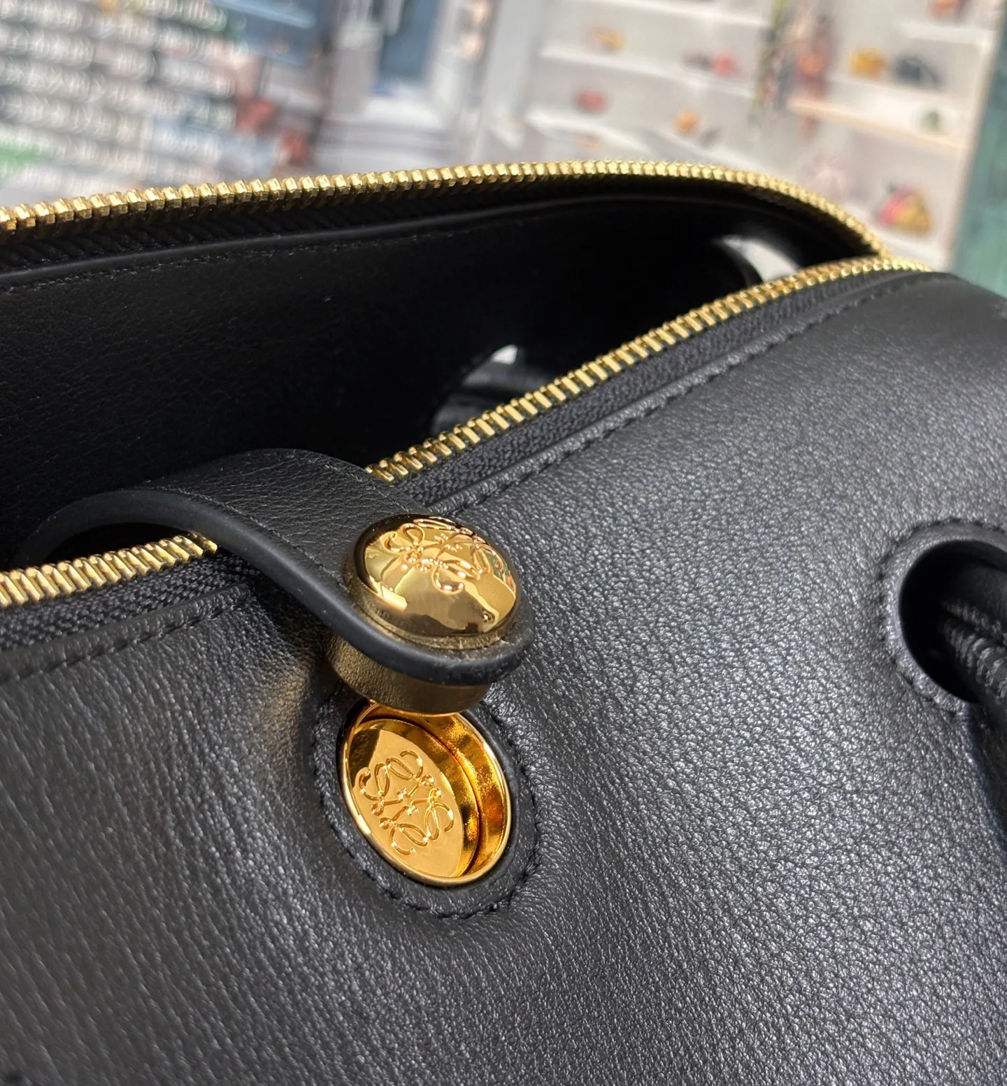 Размер сумки составляет 23,5 × 10 × 19 см. Она оснащена золотой магнитной кнопкой Pebble и увеличенной по масштабу молнией, обеспечивающей функциональность. Металлические ножки на дне гарантируют устойчивость и защиту поверхности.