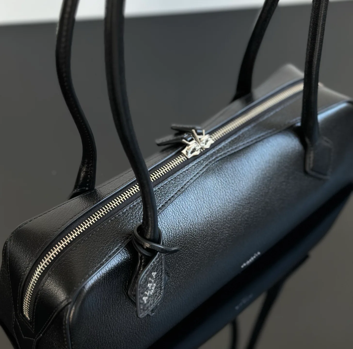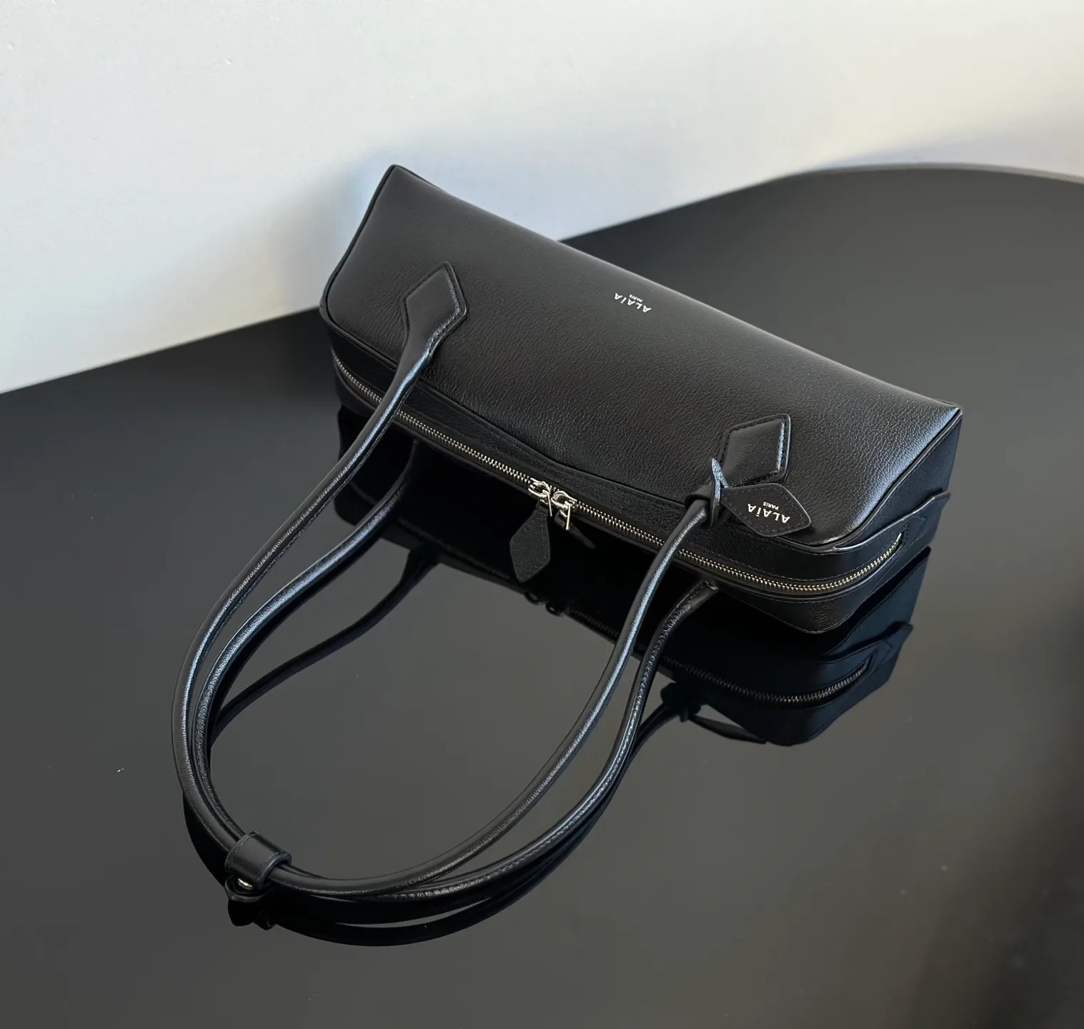 Размеры сумки составляют 33 x 12 x 10 см. Сумка подходит для городских образов и вечерних мероприятий, акцентируя внимание на элегантности. Она может сочетаться с минималистичными костюмами и платьями-футлярами. Детали о материалах отсутствуют, что подчеркивает фокус на дизайне и статусе бренда.