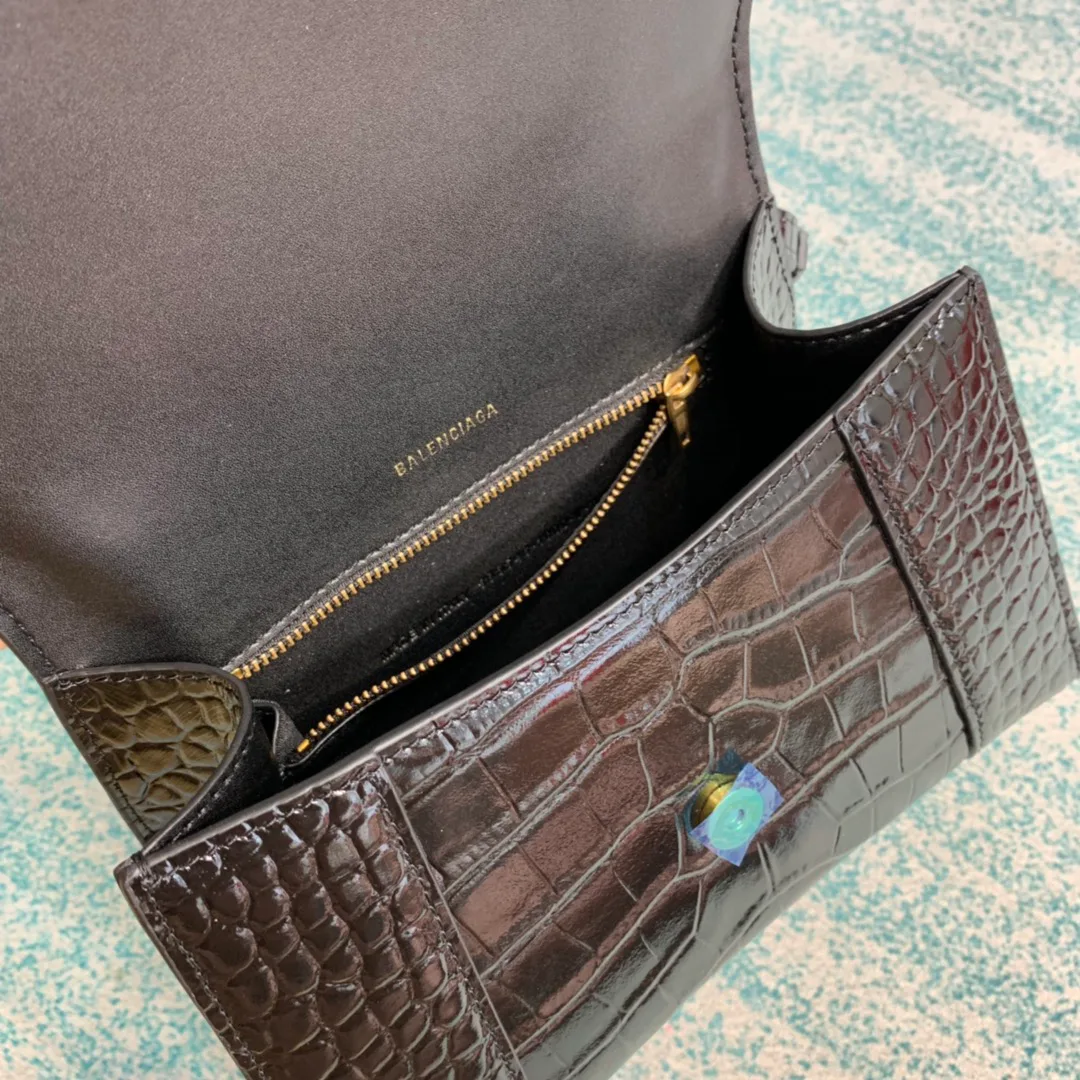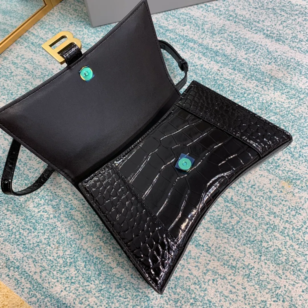 Размеры сумки составляют 23 см в ширину, 10 см в глубину и 24 см в высоту, что обеспечивает компактность и достаточный объем для необходимых аксессуаров. Золотистая металлическая фурнитура контрастирует с черным цветом и подчеркивает премиальный характер изделия. Сумка подходит для использования в повседневной жизни и на вечерних выходах. Поставляется в фирменной коробке.
