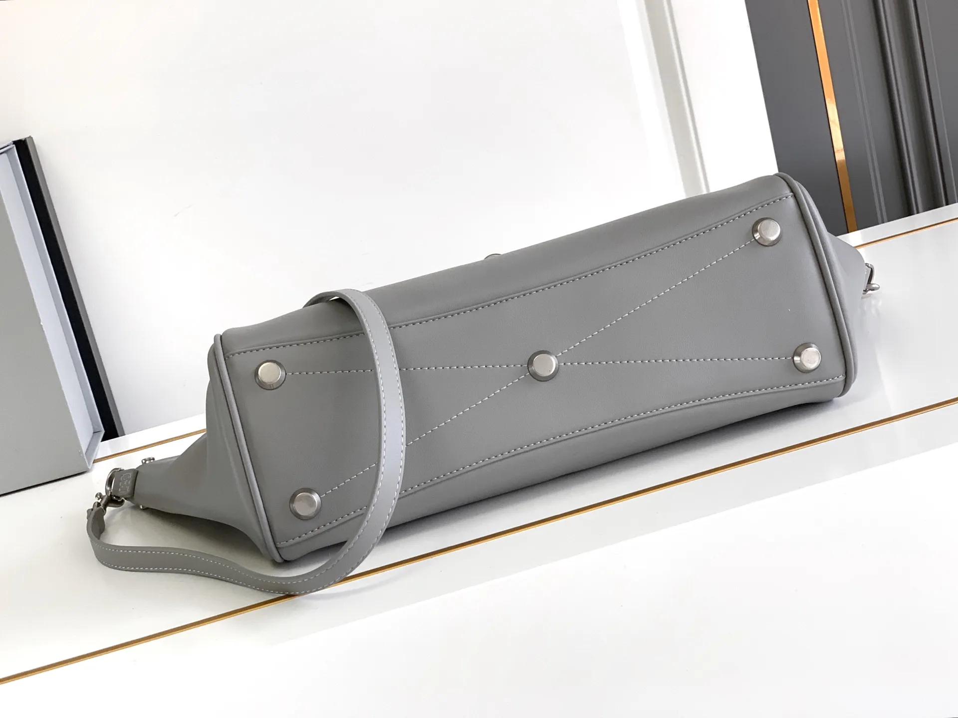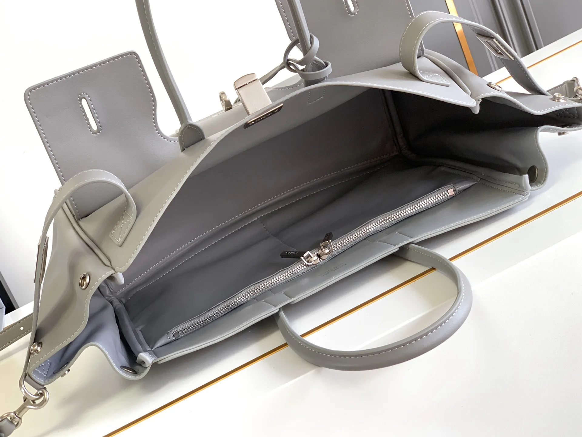 Изготовлена из ультра-гладкой телячьей кожи, обладающей роскошным ощущением и долговечностью. Фирменный квадратный поворотный замок выступает как функциональная и декоративная деталь. Размеры сумки: длина 29.5 см, высота 20.3 см, ширина 11.9 см.