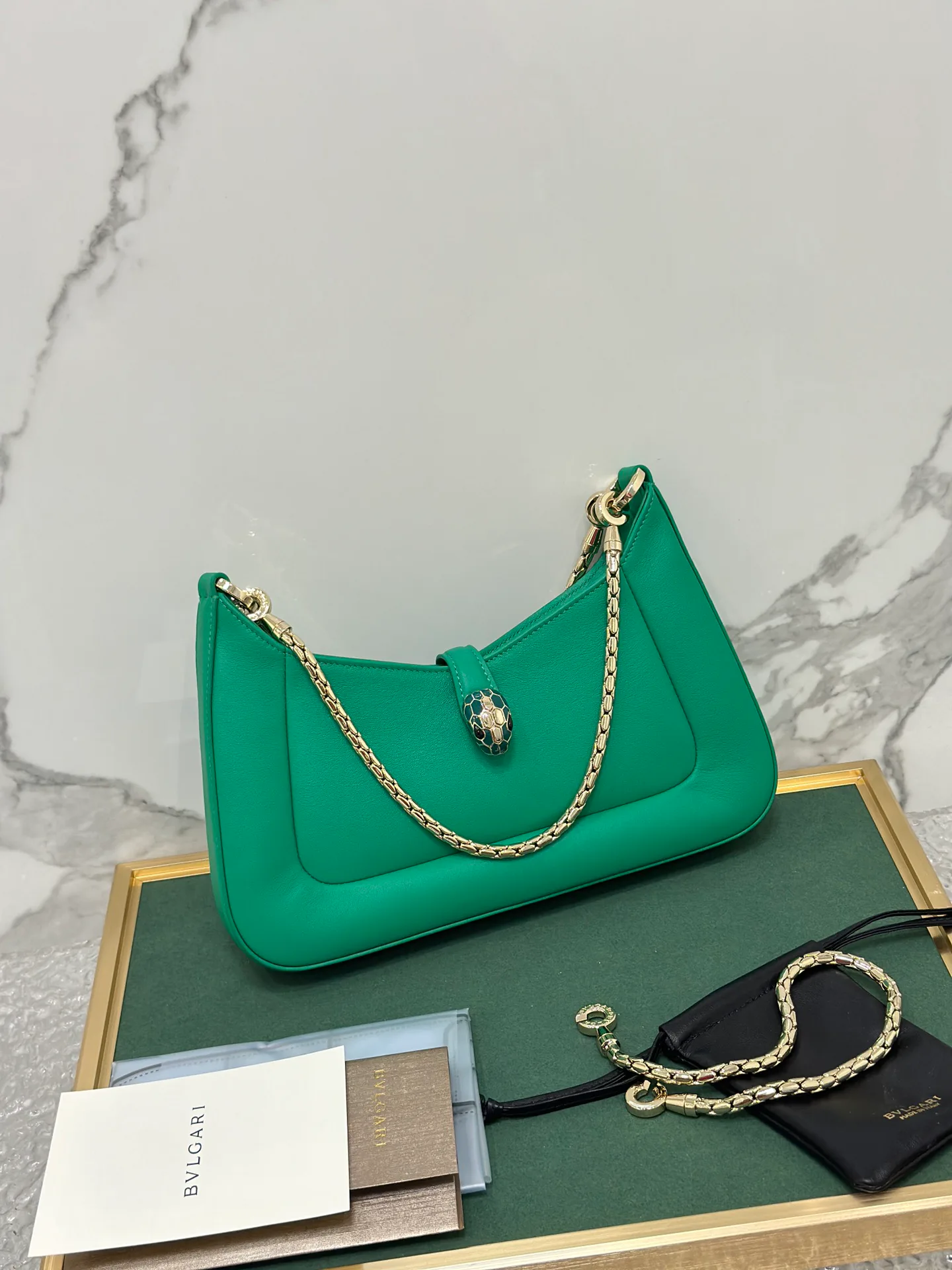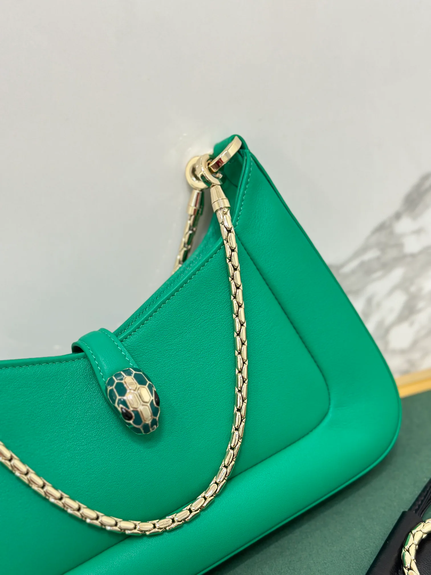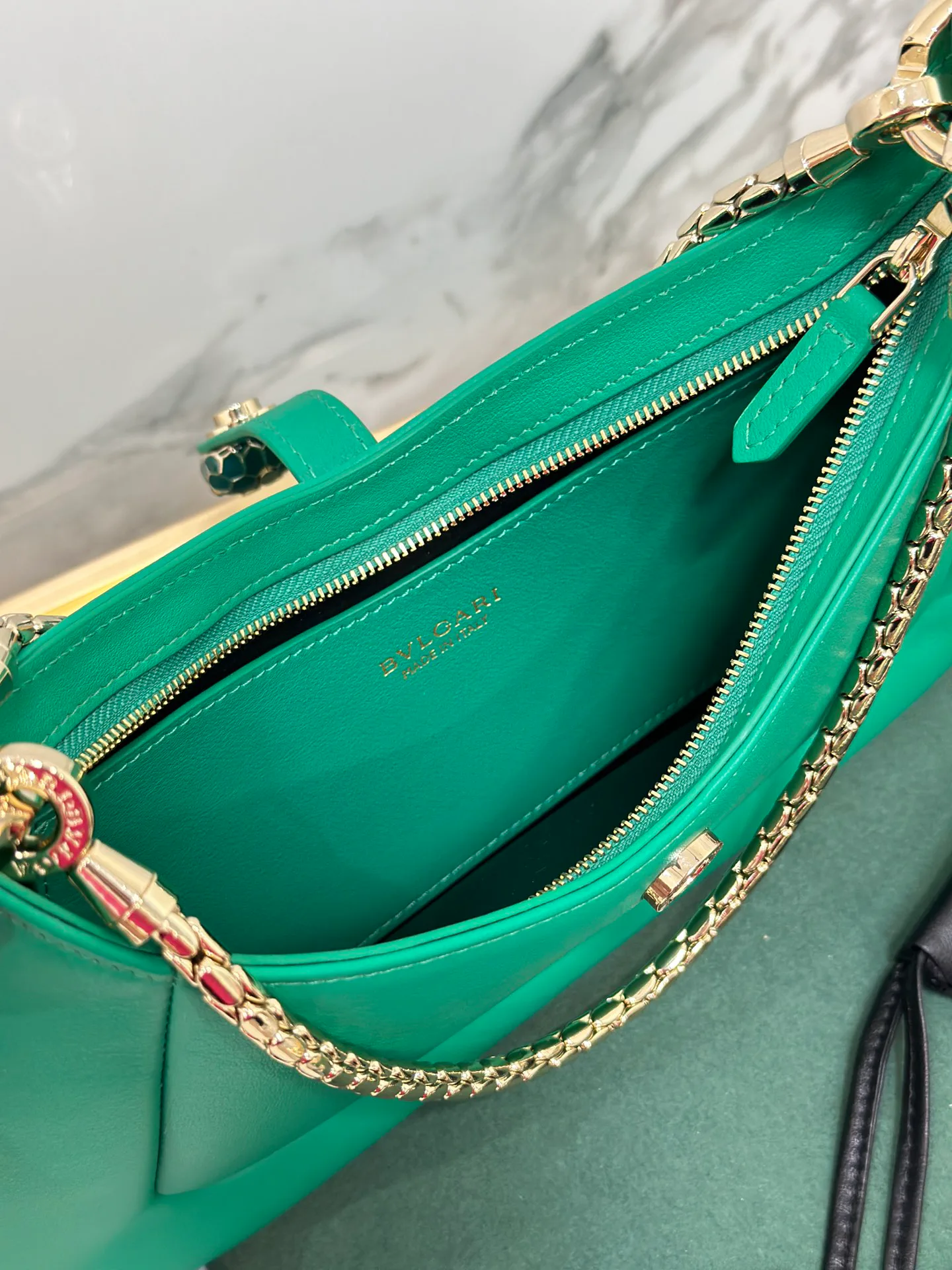 - Серия Serpenti Baia добавляет образу динамичности за счет змееобразных элементов и лаконичной геометрии, что делает сумку универсальной: она хорошо дополняет офисный костюм и вечерний наряд.