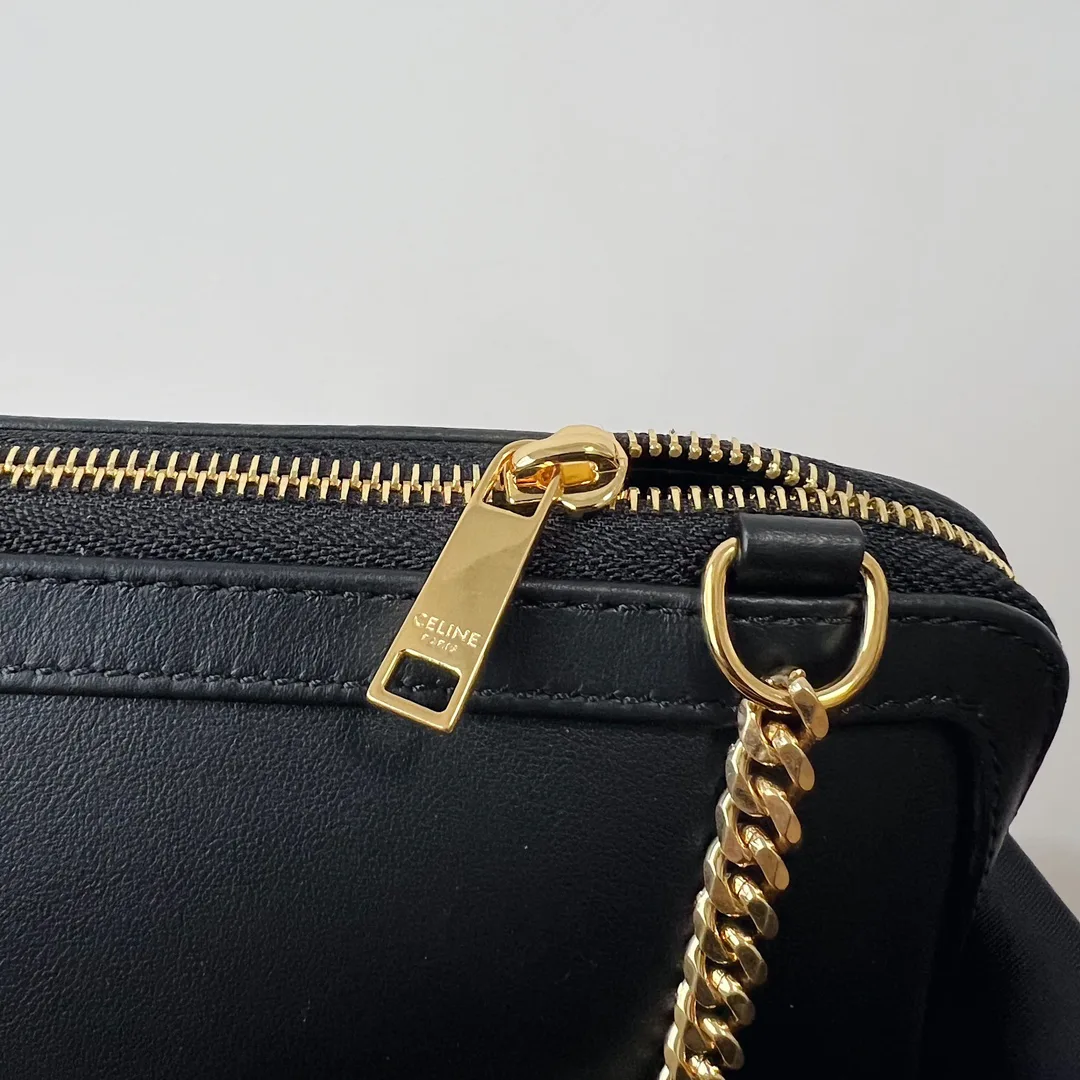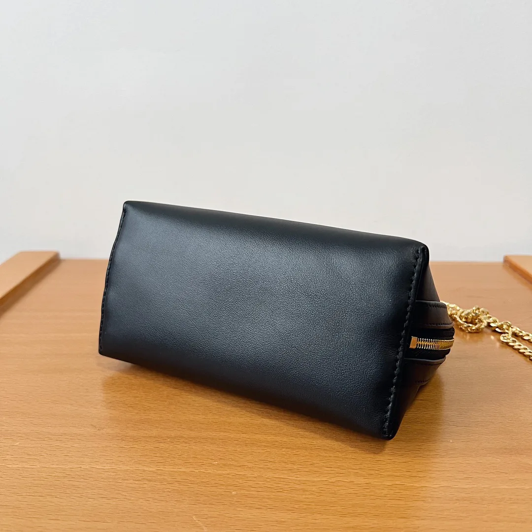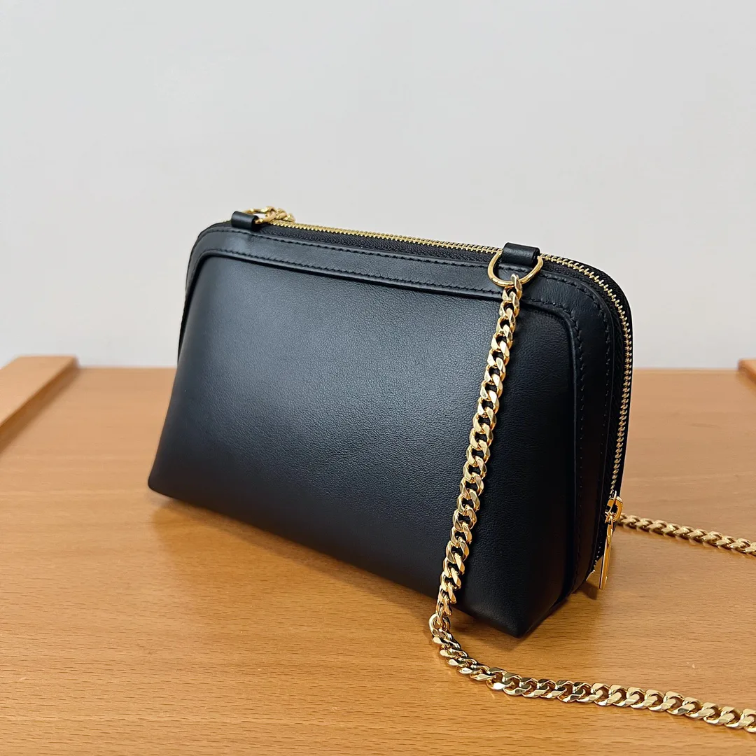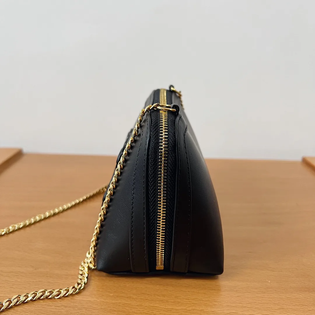 Сумка имеет конвертируемый дизайн: ее можно носить как компактную модель вручную, через плечо или кроссбоди благодаря цепному ремню длиной 55 см. Основное отделение закрывается на молнию, что обеспечивает надежность. Внутри достаточно места для хранения необходимых предметов повседневной жизни, таких как ключи и косметика.
