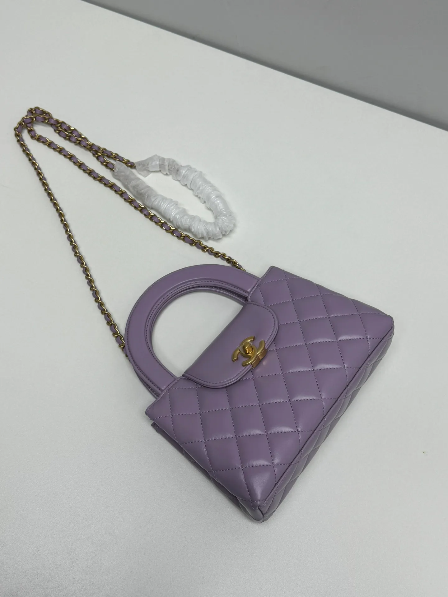 Сумки на ремне женские CHANEL — лавандово-фиолетовая модель с лёгким весом. Размер 20 × 6 × 13 см, в неё можно поместить Pro Max. Материал — кожа ягненка с масляно-восковой отделкой, поверхность мягкая и нежная на ощупь, можно носить через плечо или держать в руке. Фурнитура выполнена в ретро-золотистом цвете, внутренняя отделка — та же кожа ягненка того же оттенка. Та же модель, что у Лю Шиши.