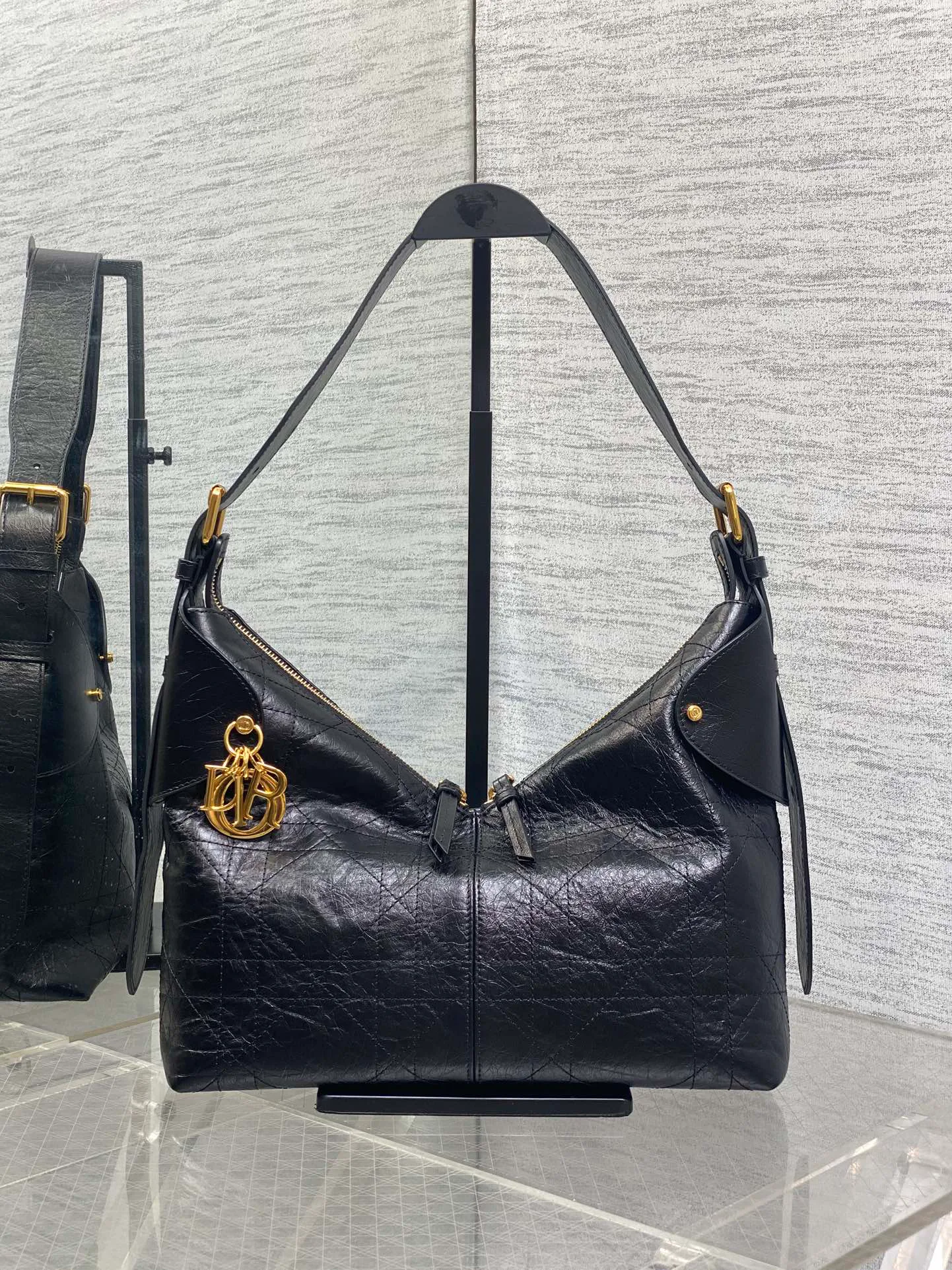 Сумки на ремне женское CHRISTIAN DIOR — новинка коллекции весна 2026, выполнена из черной складчатой кожи и украшена крупной текстурной отделкой с канатным узором. Декоративные элементы из металла с позолоченным покрытием и кожаные вставки подчеркивают благородство изделия. Основной отдел оснащен двусторонней молнией, что обеспечивает практичный доступ. Средний размер и верхняя ручка с регулируемой пряжкой позволяют носить сумку на плечо. Размеры примерно 28×18×12 см.