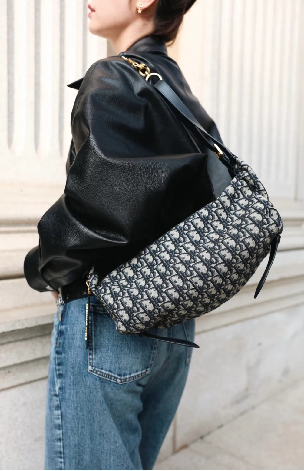 Полумесяцевидная форма придает изделию изысканность. Внешние карманы на молниях обеспечивают удобство в повседневном использовании, а основное отделение имеет секции для мелочей. Модель сочетает практичность и эстетическую привлекательность, подходя для городских будней и стильных выходов.