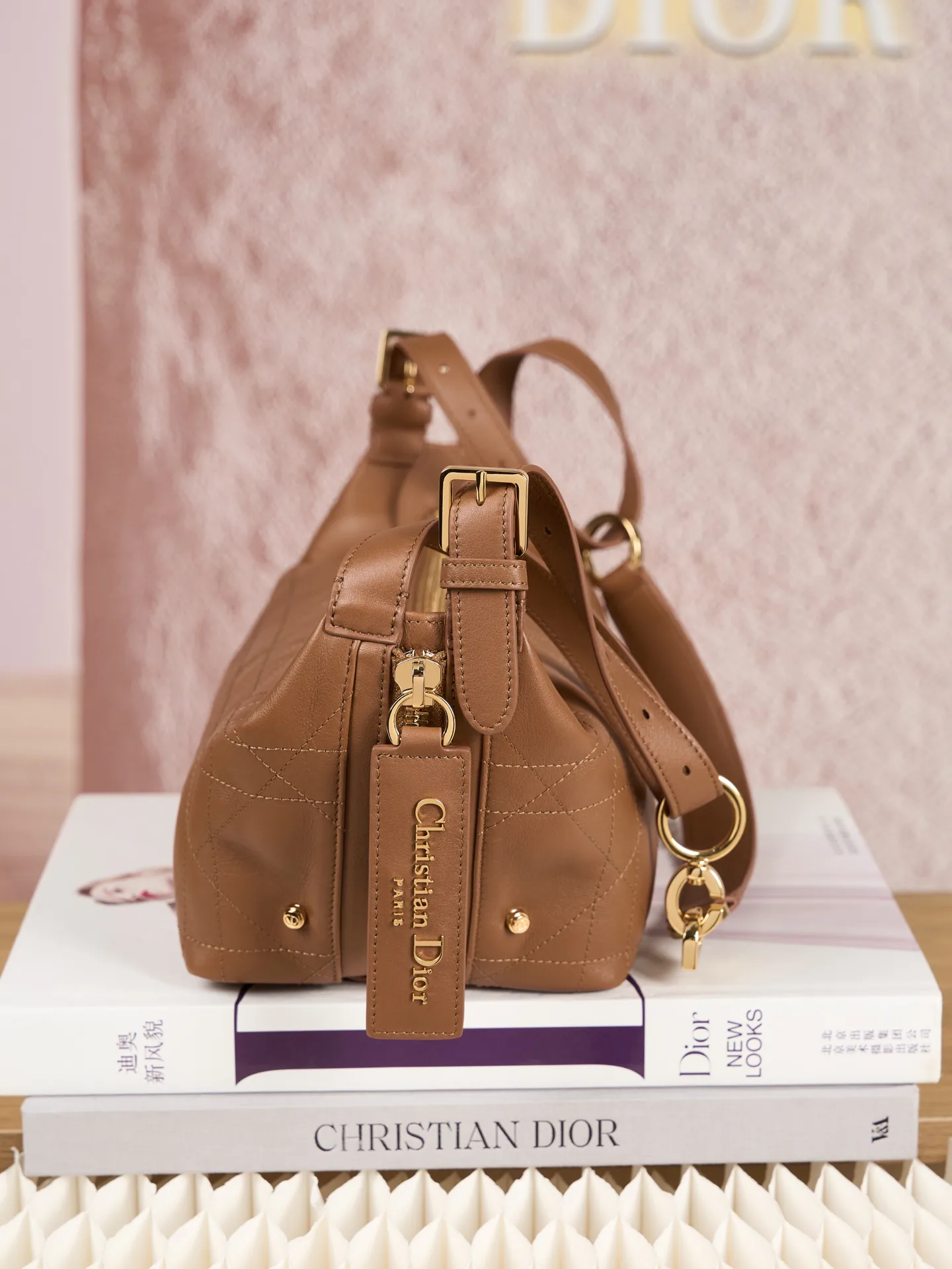 Размеры сумки составляют 25.5 × 14.5 × 14 см. Эта модель подходит для повседневного использования, сочетая мягкость кожи, узнаваемый узор Dior и функциональность.
