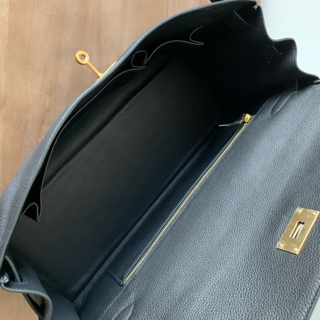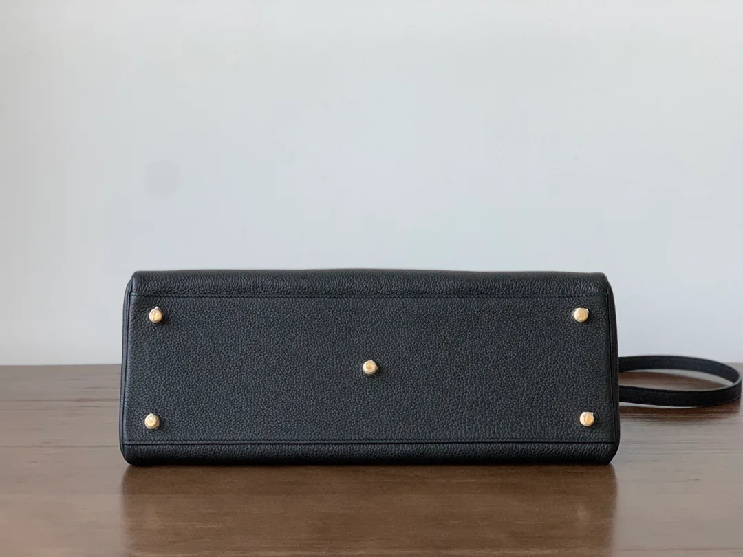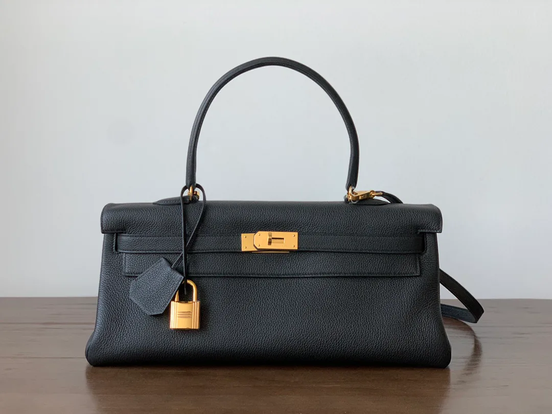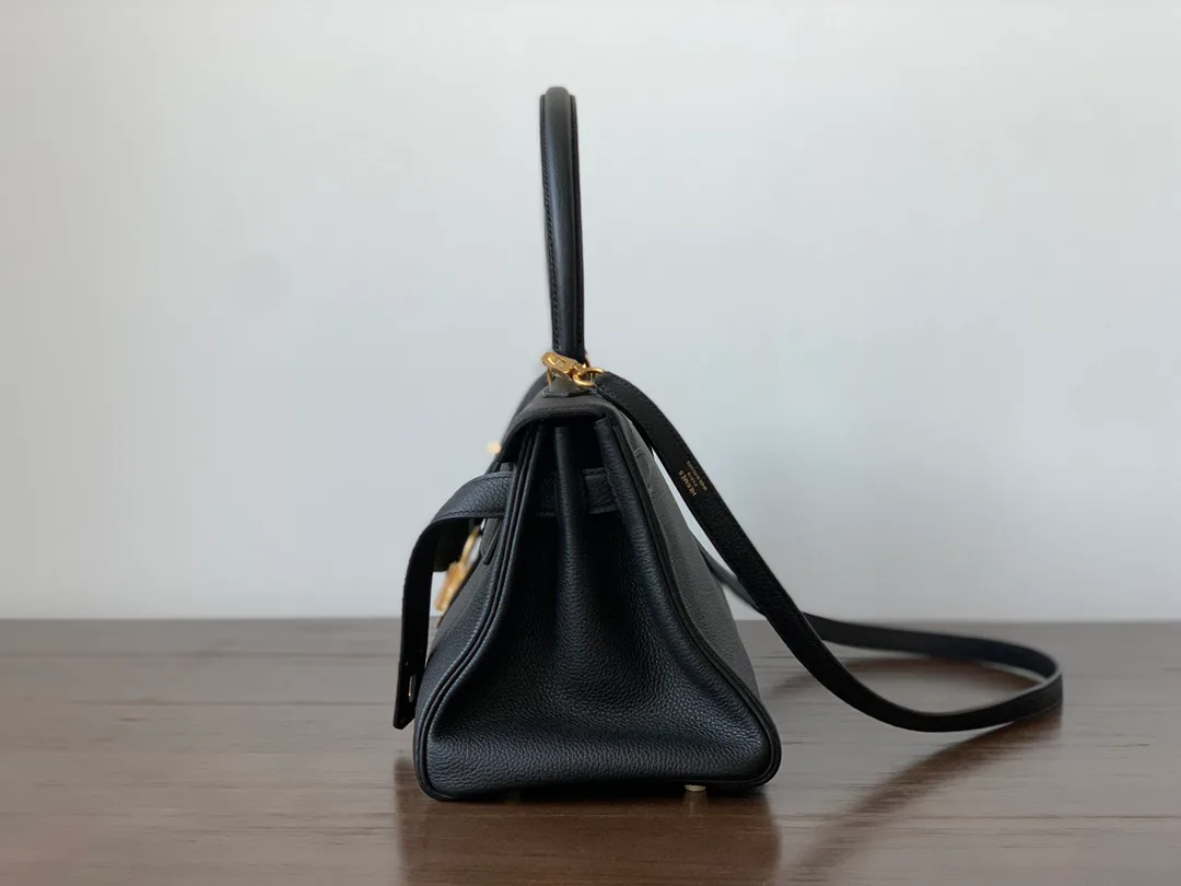 Основные характеристики: цвет черный; фурнитура золотистая; производство полностью ручная работа; дизайн классический силуэт Kelly ToGo, лаконичный и практичный; назначение сумка через плечо для повседневного использования, офиса и вечерних образов.