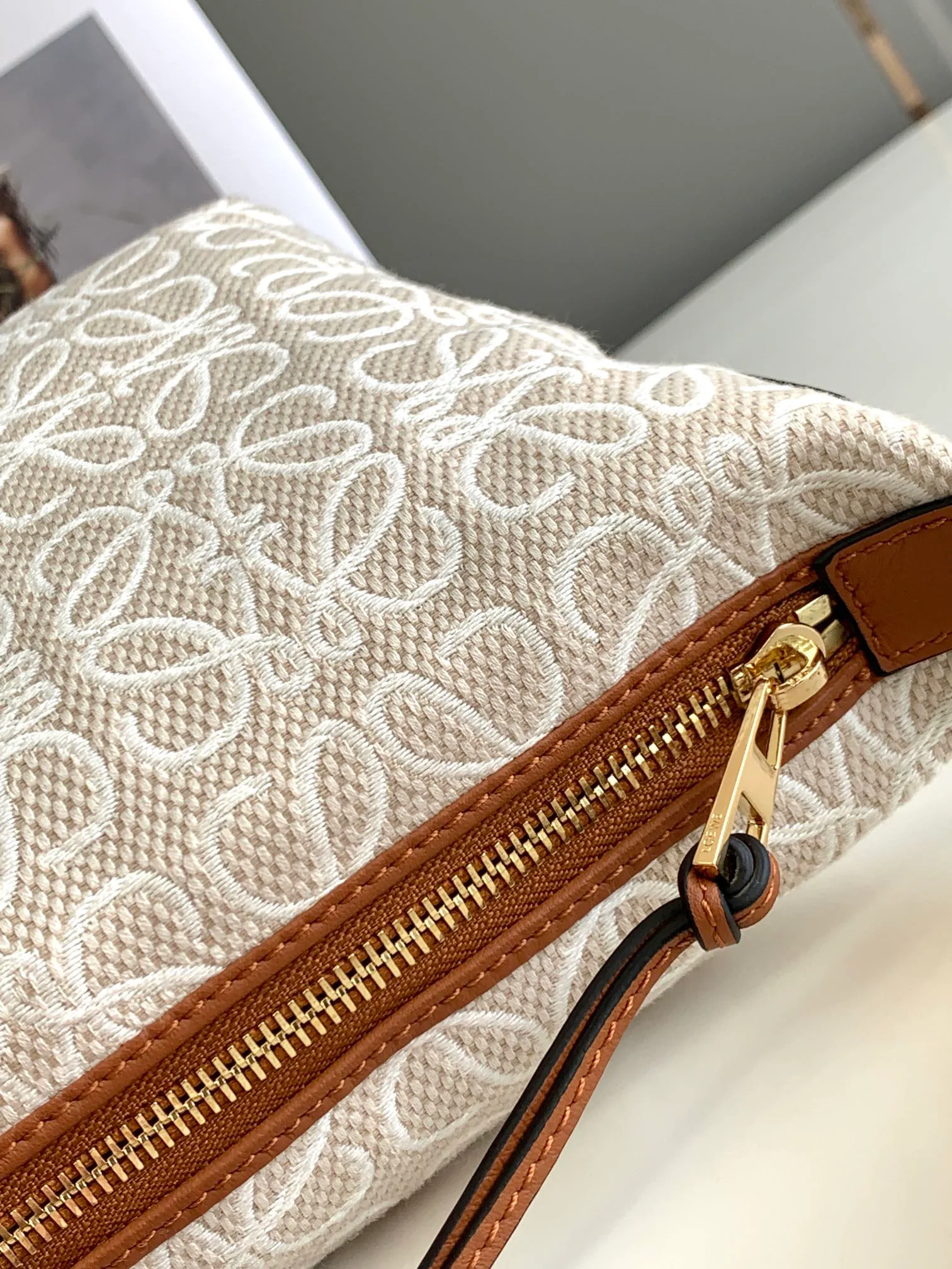 Сумка имеет основную молнию для удобного доступа к внутреннему пространству и карман для мелочей, что способствует упорядоченности. Внутренняя отделка выполнена из хлопковой канвы с рисунком в стиле елочка, обеспечивающей прочность и благородный вид. Размеры сумки составляют примерно 21 см в ширину, 17 см в высоту и 12,5 см в глубину.