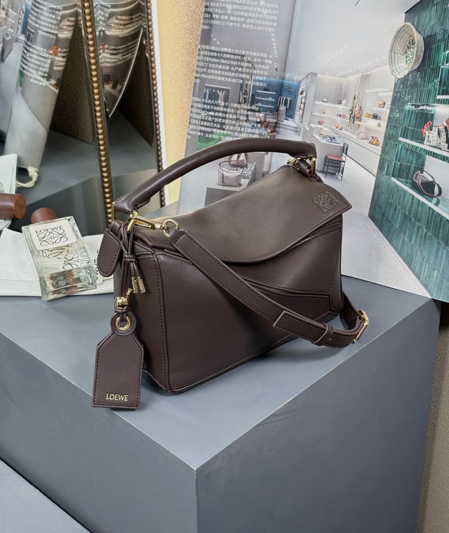 Идеально подходит для ценителей минимализма и роскоши, ищущих легкость без компромиссов по качеству. PUZZLE Lambskin Small Bag станет изысканным акцентом в образе — от делового лука до вечернего наряда — благодаря мягкой коже, темно-коричневому тону и лаконичным геометрическим деталям.