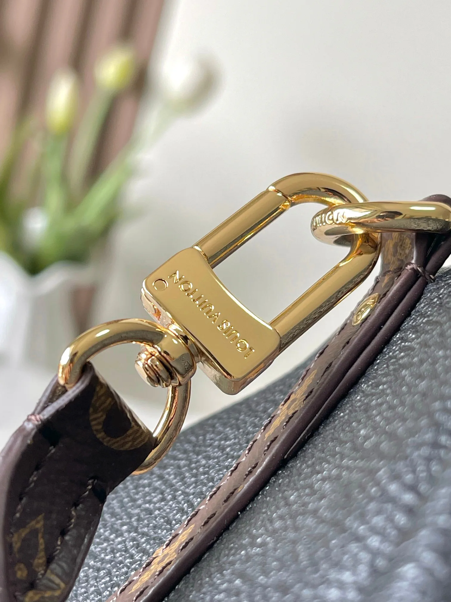 Сумка подходит для повседневного использования, помещая необходимые мелочи, такие как телефон и ключи. Она сочетает преимущества монограммной отделки, изящной фурнитуры и функциональности в компактном формате.