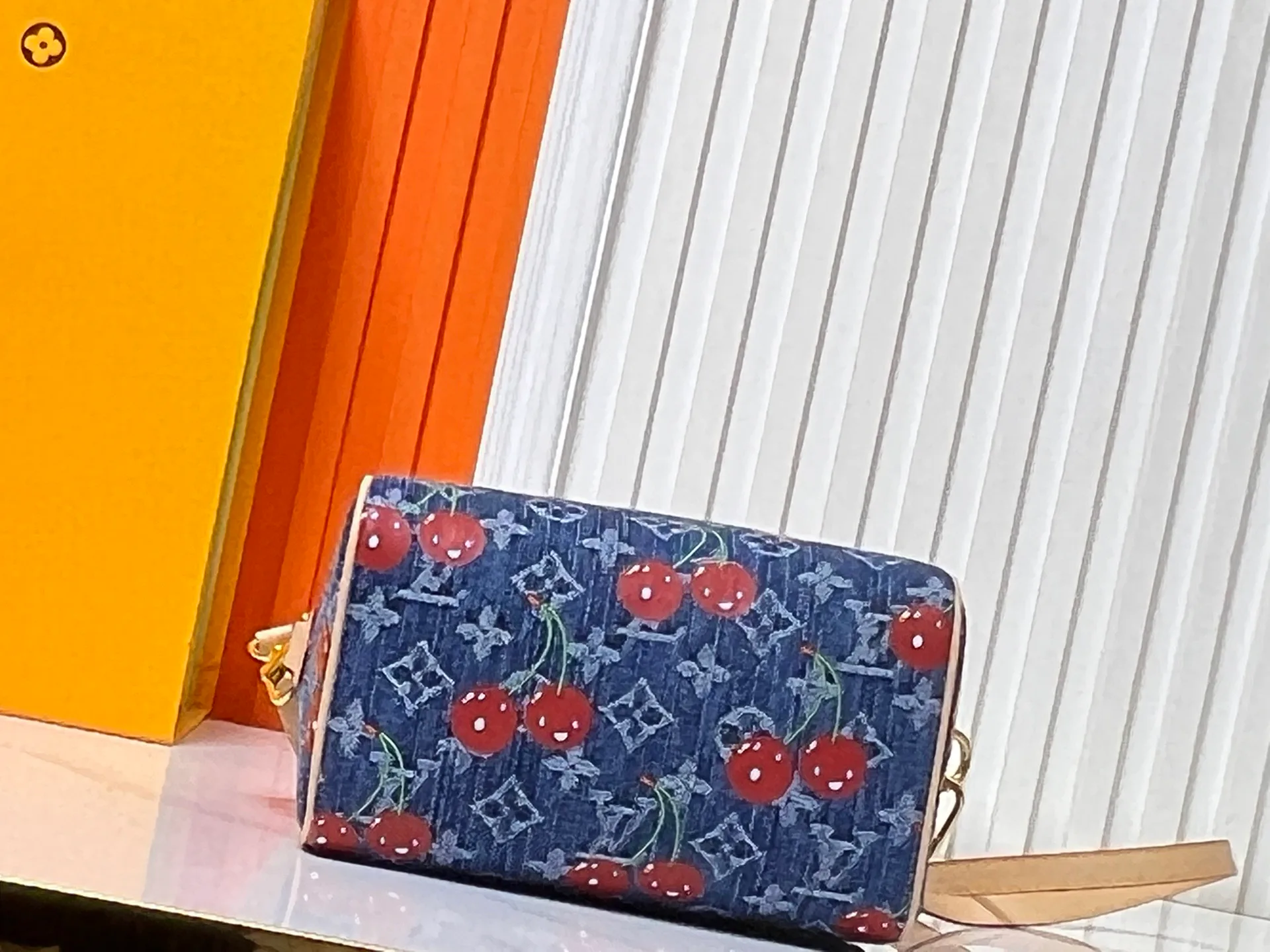 Сумка притягивает внимание выразительным монограммным узором в ярких цветах радуги. В комплект входит ключница в виде бантика и замок, что добавляет функциональности. Размеры сумки составляют 20,5 × 13,5 × 12,0 см. Сумка сочетает эстетику коллекции LV x Murakami с высококачественными материалами и практичностью.