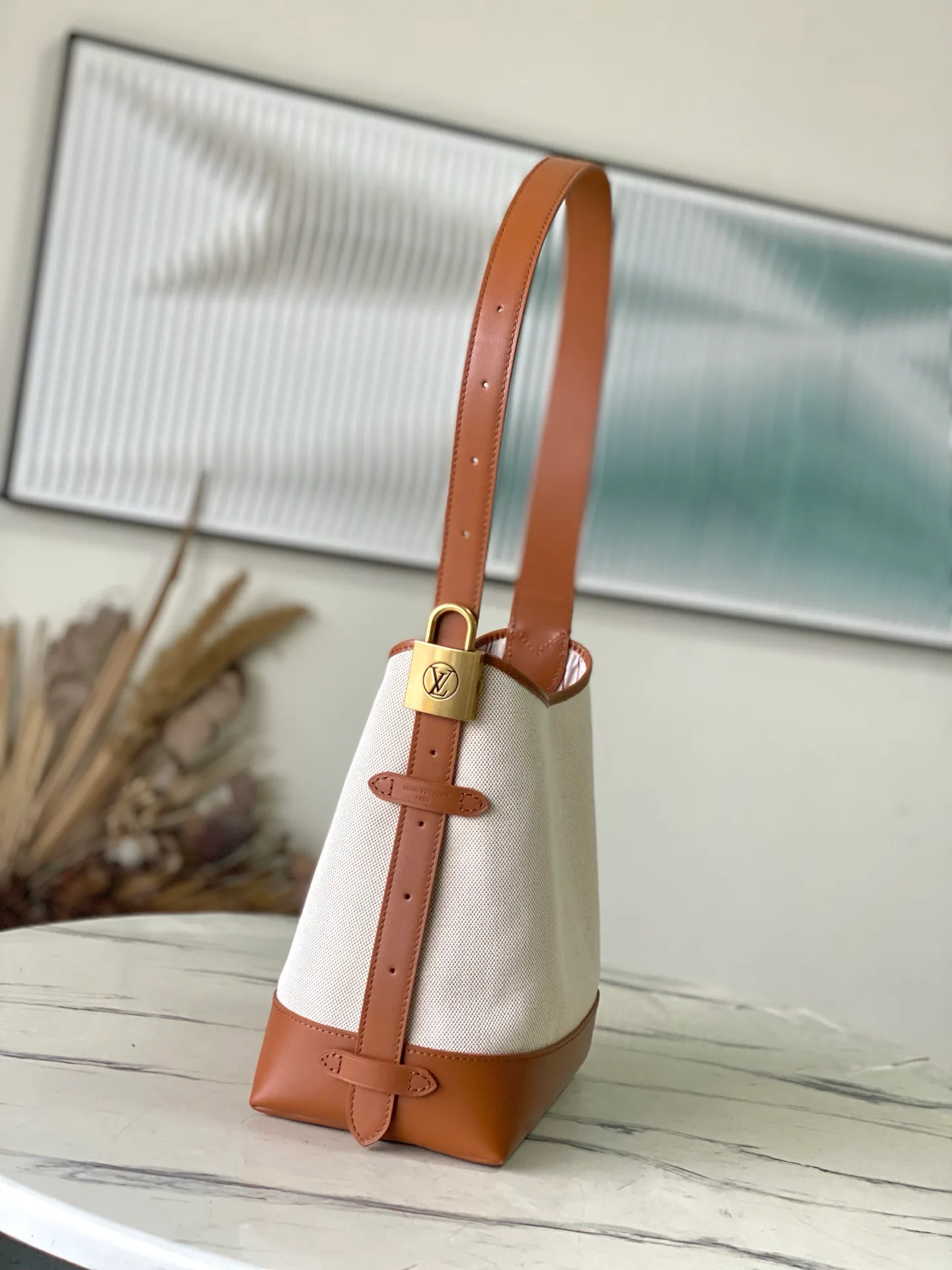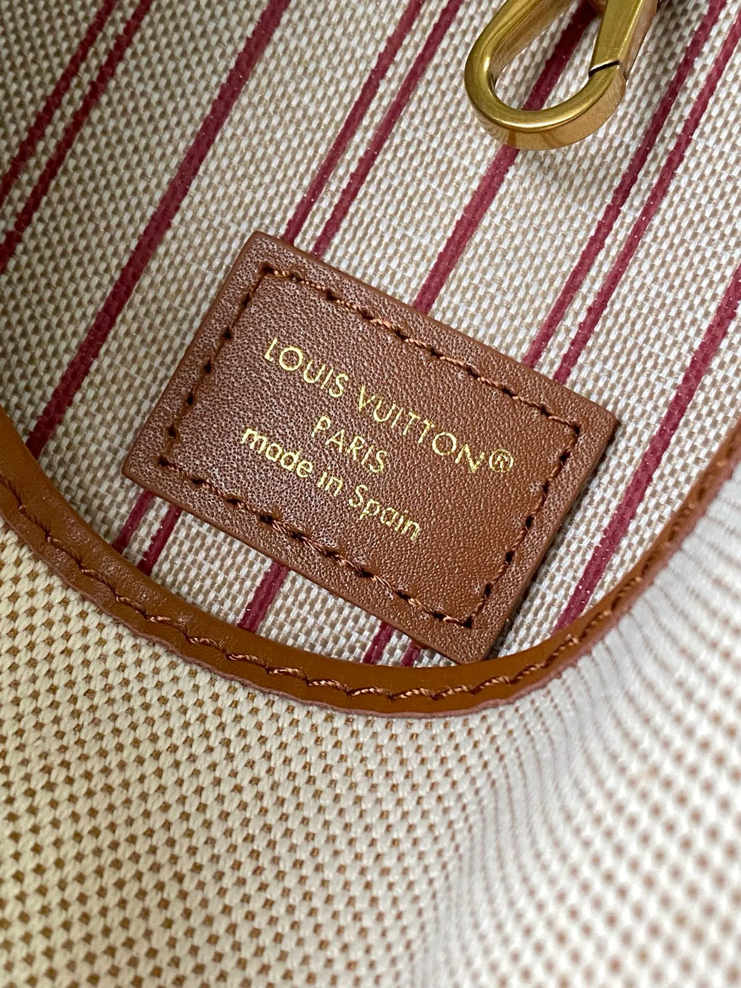 Съемный внутренний карман на молнии с монограммой подчеркивает брендовое наследие. Полосатая подкладка аккуратно дополняет общий дизайн. Размеры сумки составляют 24 × 28 × 16 см, что делает ее удобной для повседневного использования и более нарядных образов.