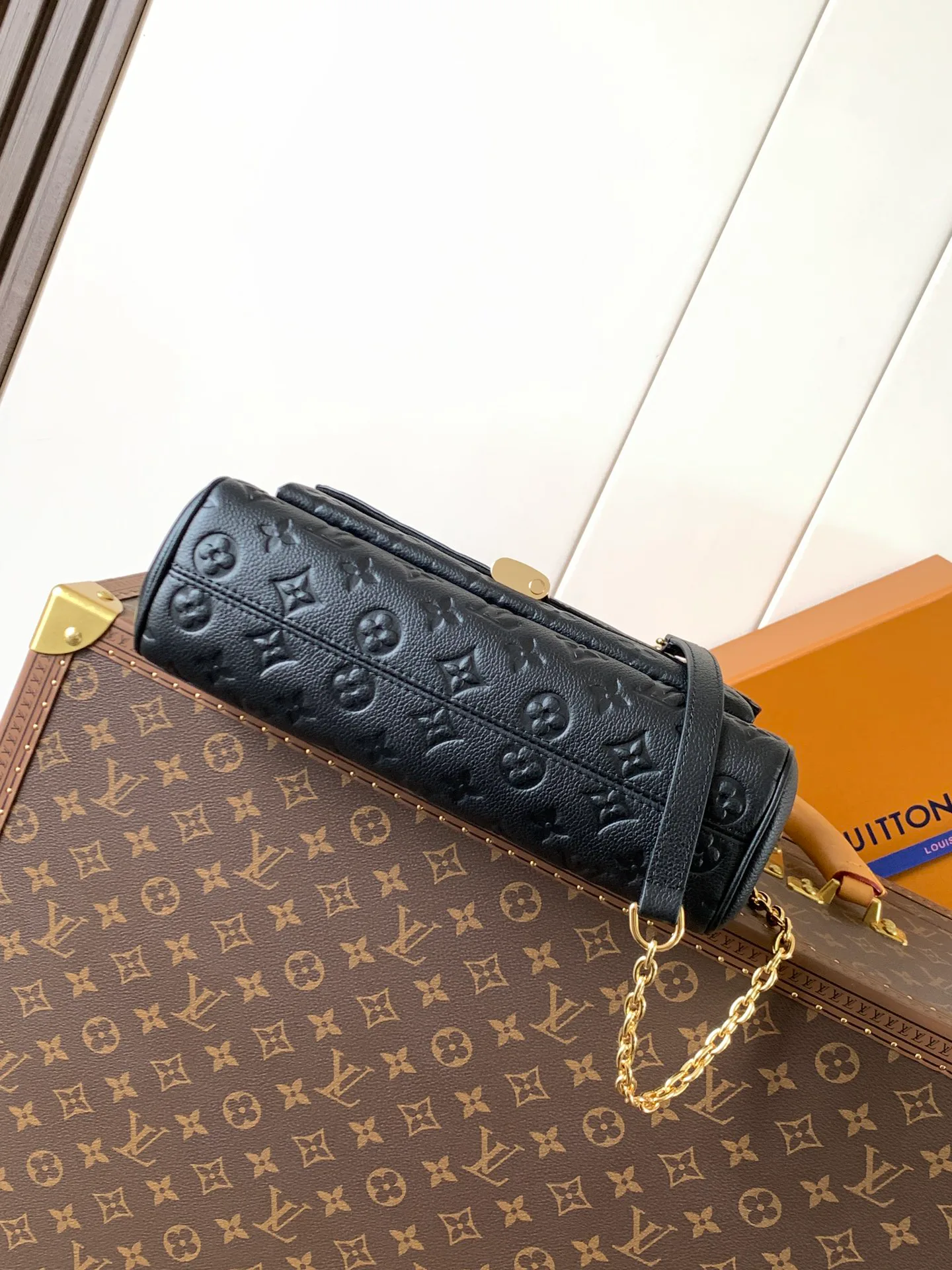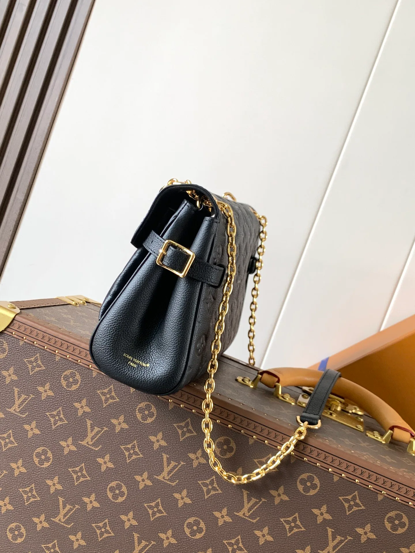 Сумка имеет цепной ремень с возможностью регулировки длины. Внутри расположен большой карман и накладной карман, что позволяет разместить все необходимые вещи, такие как смартфон, кошелек и очки. Эта модель подходит для повседневного ношения и вечерних мероприятий.