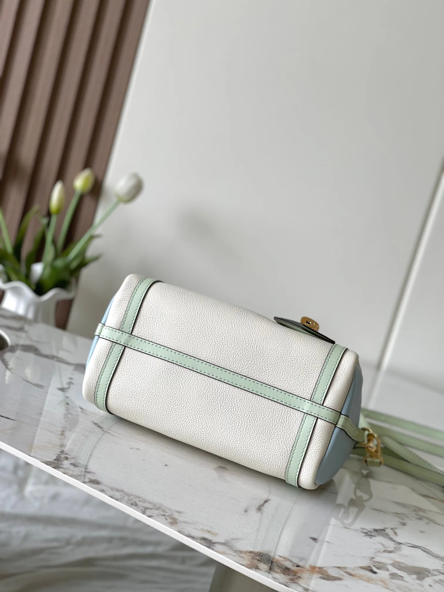 Сумка имеет высоту 17 см, ширину 13,5 см и длину 26 см, что делает ее удобной для хранения повседневных вещей, таких как телефон, кошелек и мелкие предметы. Дизайн предусматривает несколько способов ношения, а металлические элементы и ключница с замком добавляют практичности. Express Mini Bag является компактным аксессуаром, который отлично впишется в городской стиль и повседневные наряды.