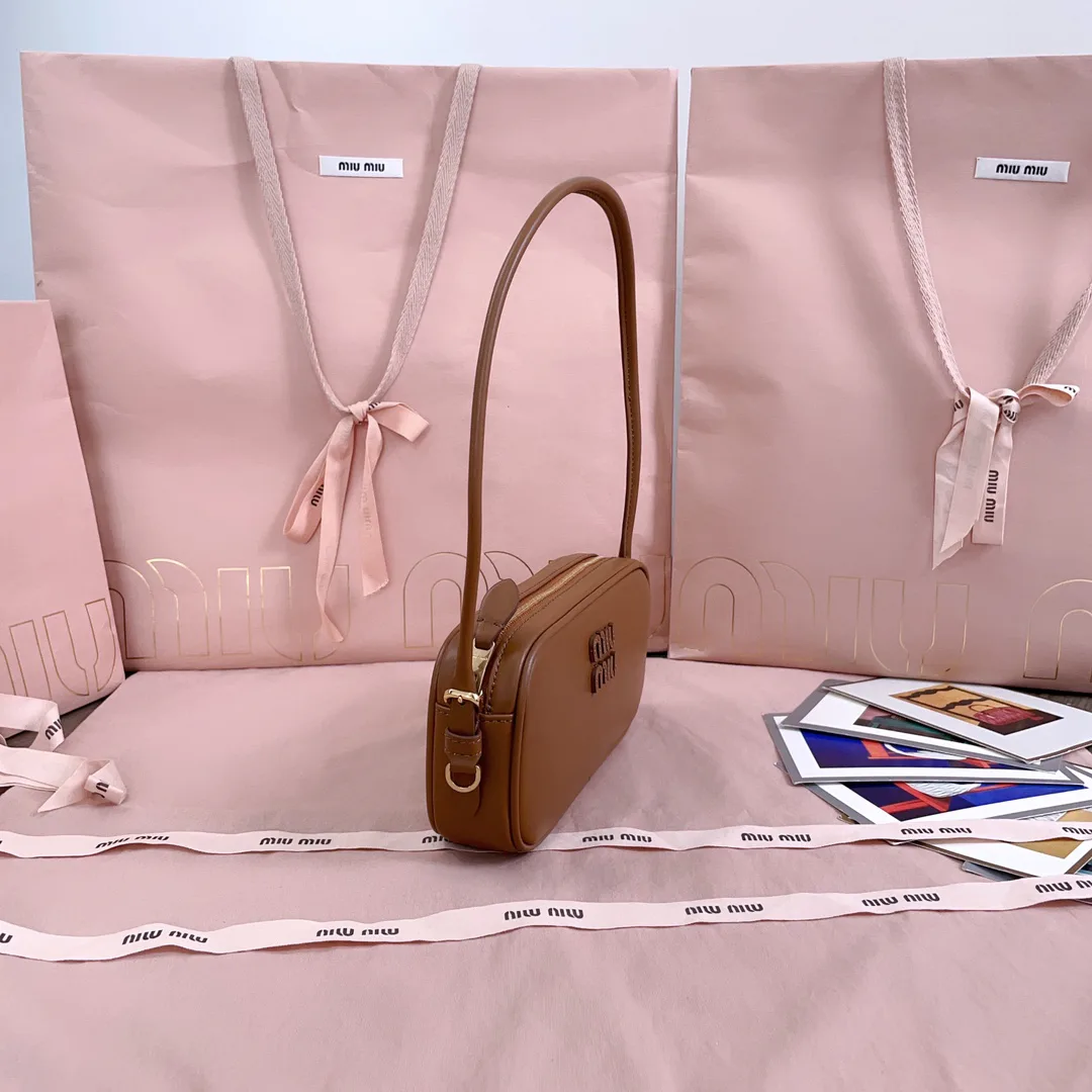 Сумочка имеет лаконичную форму и структурированную кожу, что отражает современность бренда. Передняя часть украшена тисненой эмблемой. Внутренняя отделка выполнена из хлопкового сатина, который приятен на ощупь. Регулируемый и съемный кожаный плечевой ремень позволяет носить изделие как через плечо, так и в виде клатча.