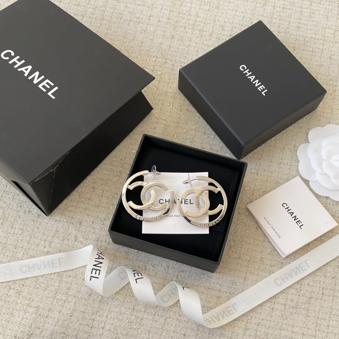Бижутерия CHANEL — новые серебристые серьги-кольца с круглой формой и центральной выемкой в виде двойной буквы C. Они не давят на ухо и отличаются хорошей фактурой. Серебристый цвет стал одним из ведущих в этом сезоне. Эти серьги подходят к различным образам и служат заметным акцентом в повседневном стиле.