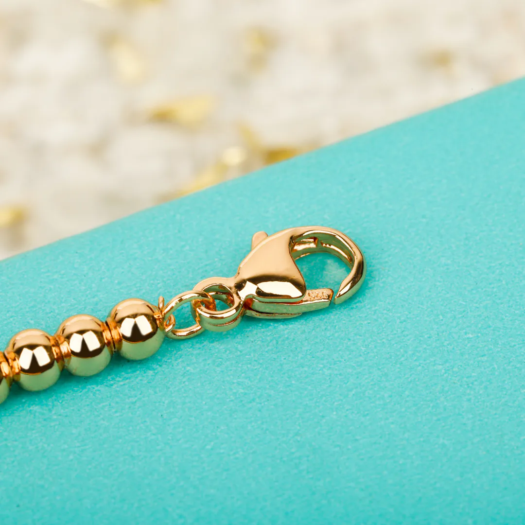 Изящный браслет с бусинами сочетается с гравированным ожерельем, создавая лаконичный и элегантный комплект.